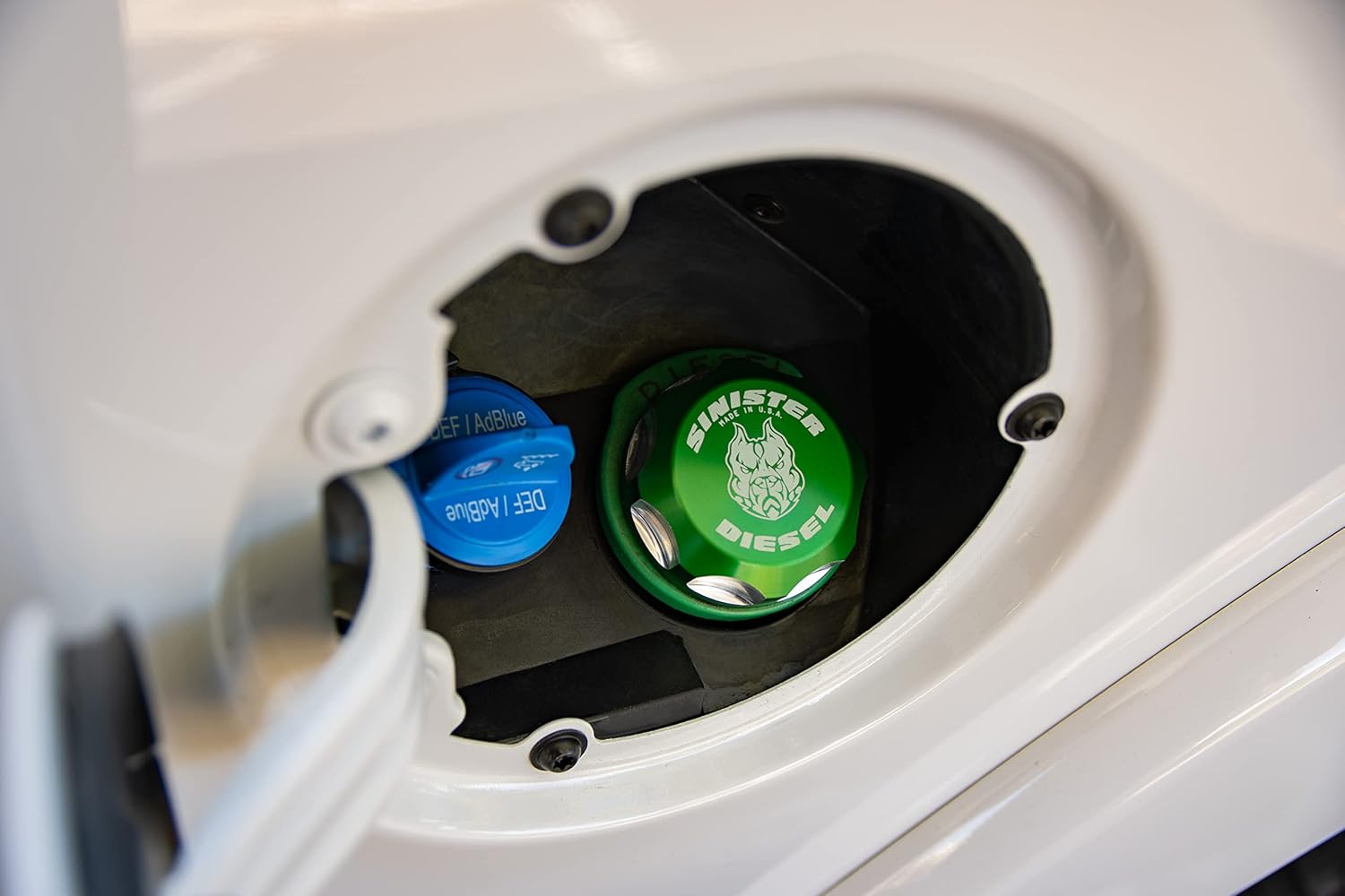 3. Instale a nova tampa: Alinhe o capô de combustível Sinister Diesel com o orifício de entrada e pressione firmemente até que esteja completamente encaixado.