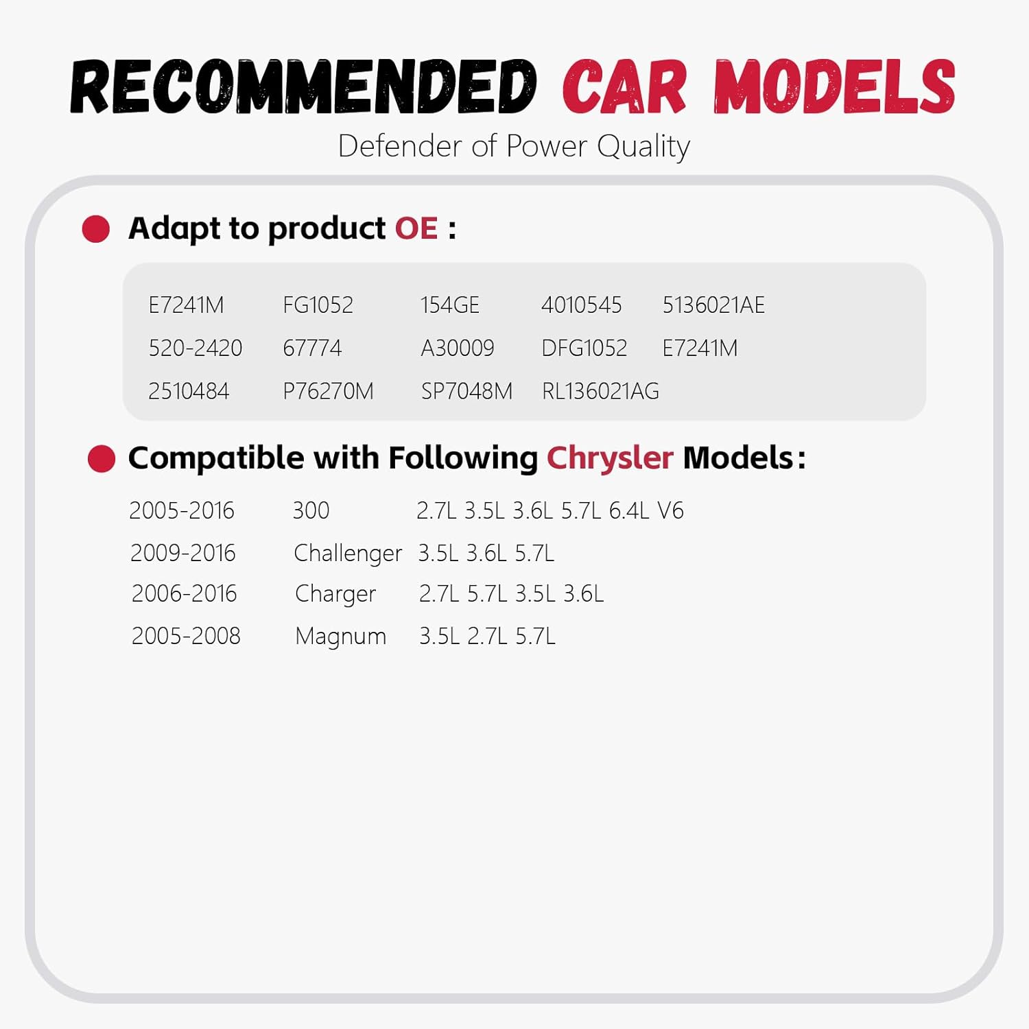 - 【Modelo Recomendado】 Compatível com 300 (2005-2016) 2.7L, 3.5L, 3.6L, 5.7L, 6.4L; Challenger (2009-2016) 3.5L, 3.6L, 5.7L; Charger (2006-2016) 2.7L, 5.7L, 3.5L, 3.6L; Magnum (2005-2008) 3.5L, 2.7L, 5.7L.