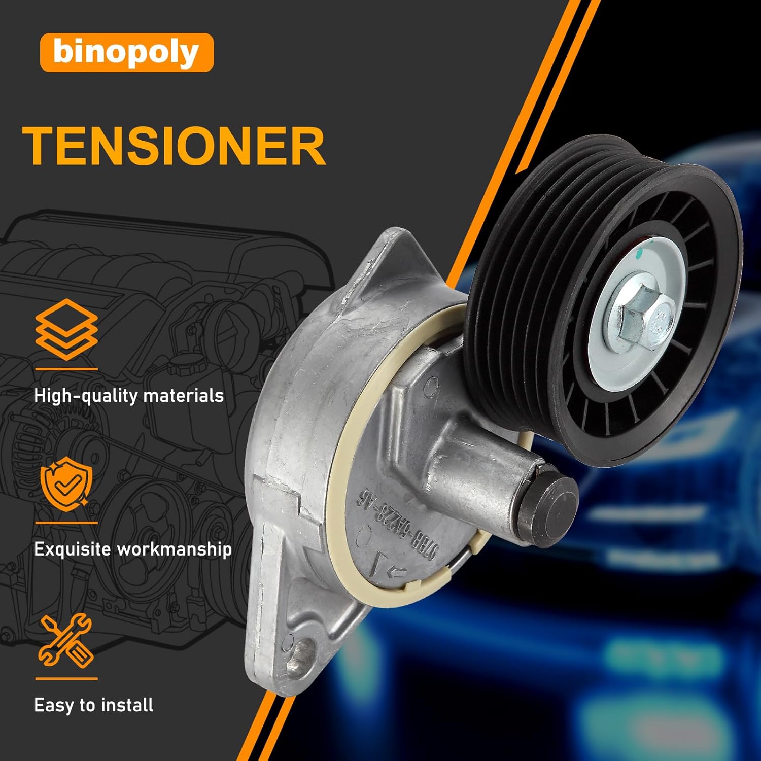 O tensionador Binopoly é projetado com um corpo robusto de ferro de alta resistência ou liga de alumínio, um dispositivo elástico de alta eficiência que resiste ao desgaste, e uma combinação otimizada de placas de amortecimento. O resultado é um funcionamento silencioso e de alta velocidade, que mantém a operação do motor em condições ideais, contribuindo para a longevidade do mesmo.