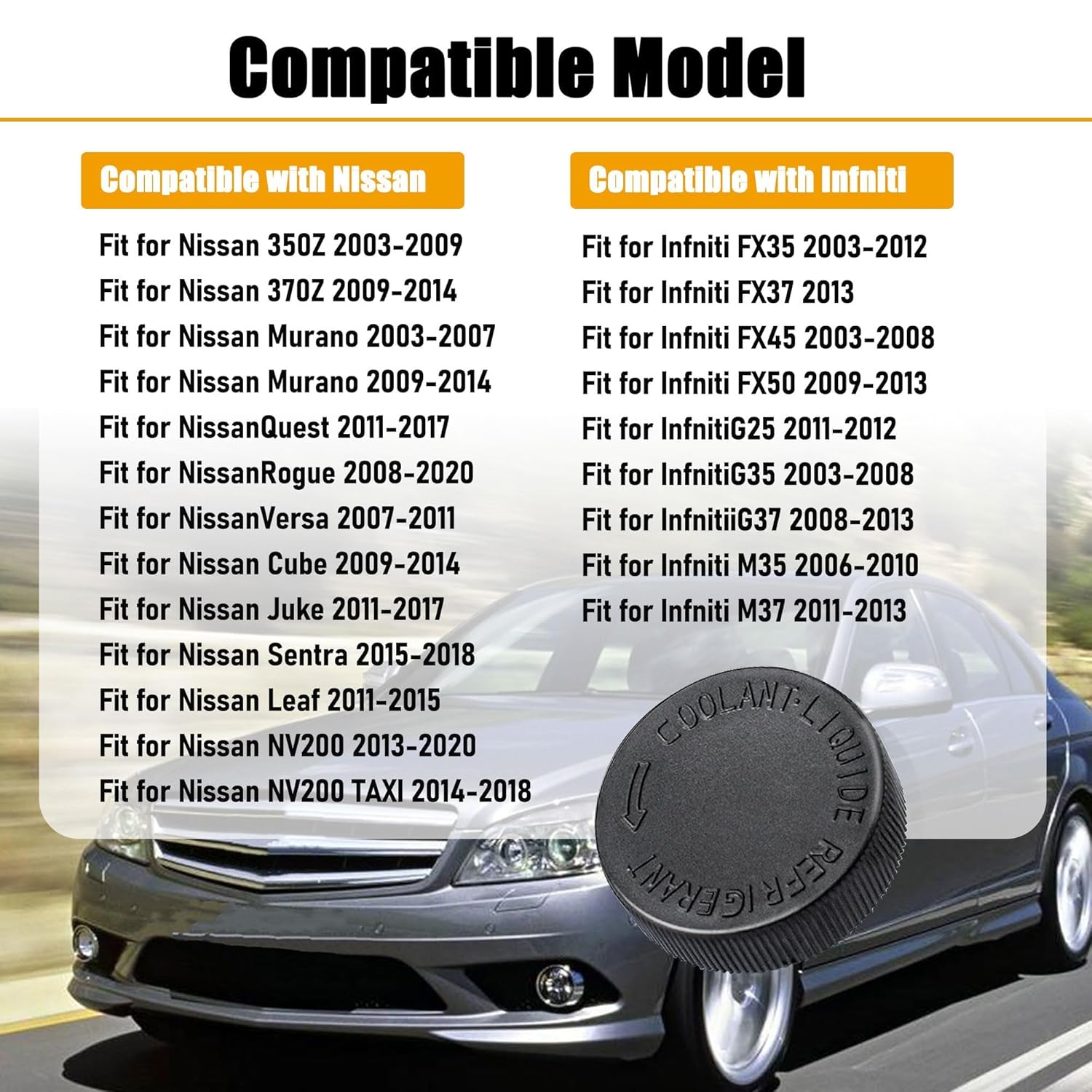 Descrição do Produto: Tampa do Reservatório de Transbordo de Fluido de Arrefecimento Black Engine Compatível com Infiniti e Nissan