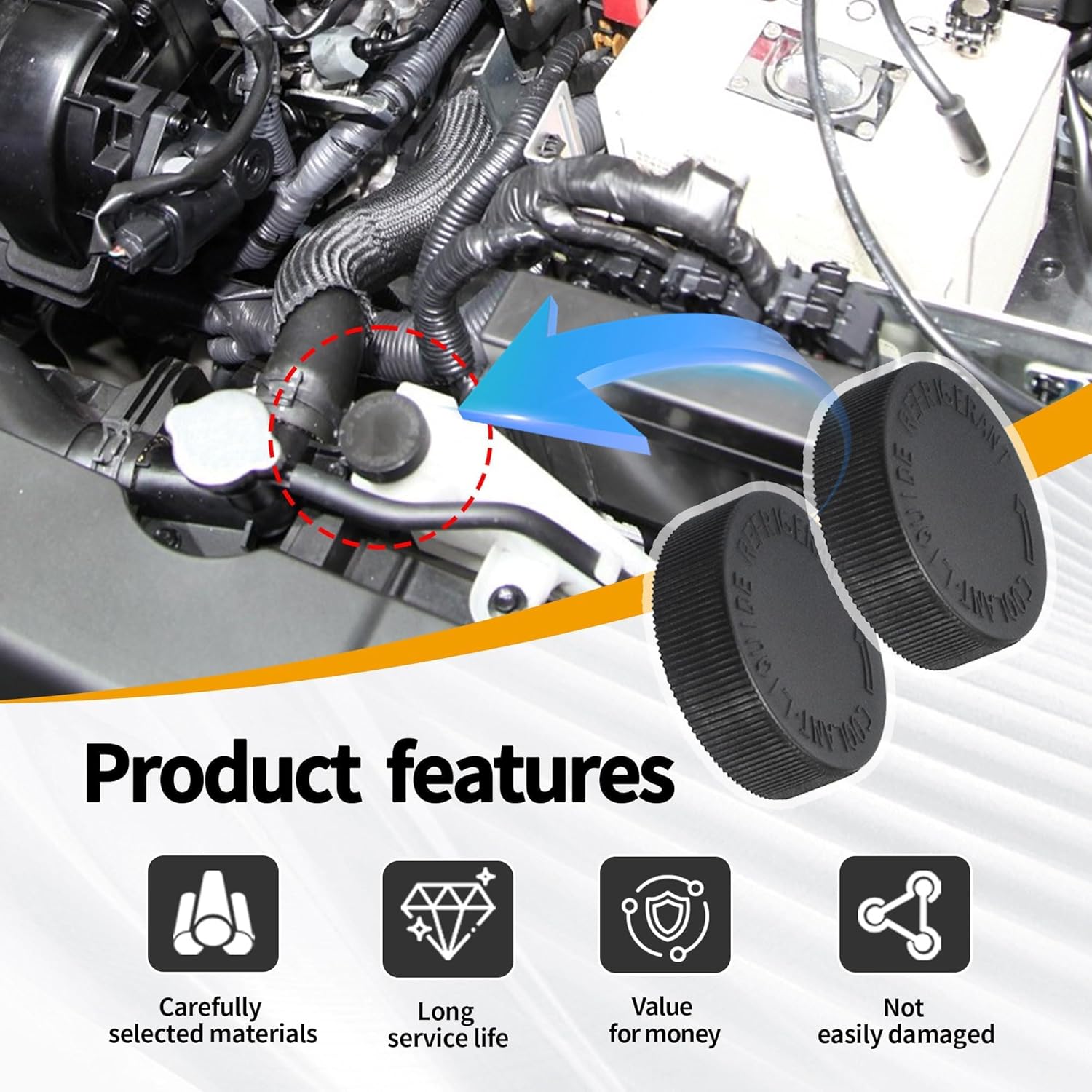 – Design: Tampa com vedação aprimorada para evitar vazamentos de fluido de arrefecimento.