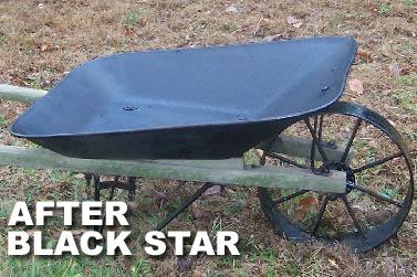 Used this to touch up the underside of my 54inch mower deck. After power washing it clean, let it dry and applied this and the spray to all the surface rust spots. Turn nice and black when dry, then waited 24hrs before applying the Slip Plate paint on the underside to reduce grass build up!