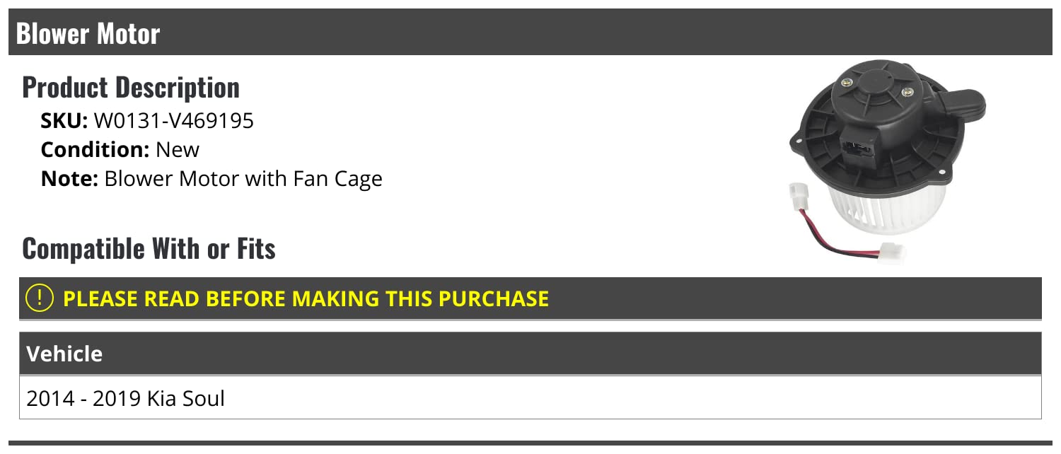1 avaliação para Motor do Ventilador com Gaiola – Compatível com Kia Soul 2014-2019