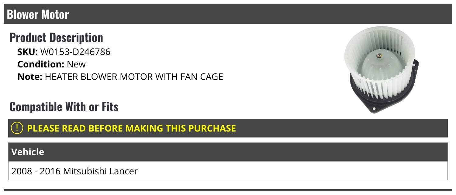 Descrição do Produto: Motor do Ventilador com Gaiola – Compatível com Mitsubishi Lancer 2008-2016