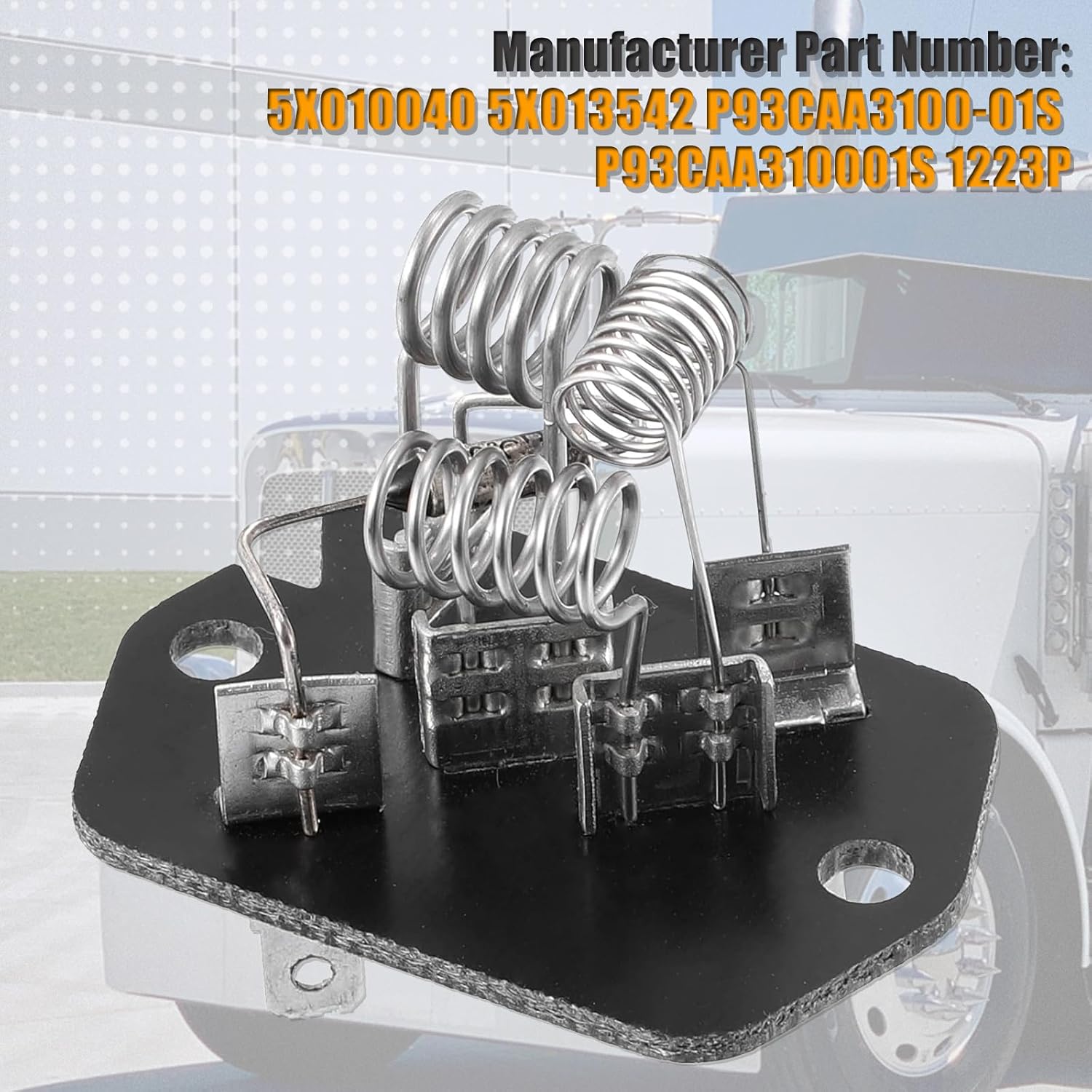 O Resistor do Ventilador Blower Resistor é uma peça essencial para o funcionamento adequado do sistema de aquecimento e ventilação dos caminhões Kenworth e Peterbilt. Este componente substitui os números de referência OE 5X010040, 5X013542, P93CAA3100-01S, P93CAA310001S e 1223P, garantindo compatibilidade e desempenho superior. O resistor é projetado para se encaixar em todos os modelos de Peterbilt de 1994 a 2007, incluindo COE, Chassis e Convencional com unidade Signet principal e unidade de dormir (4 terminais). Para os caminhões Kenworth, é compatível com todos os modelos convencionais de 1995 a 2009, também com unidade Signet principal e unidade de dormir (4 terminais).
