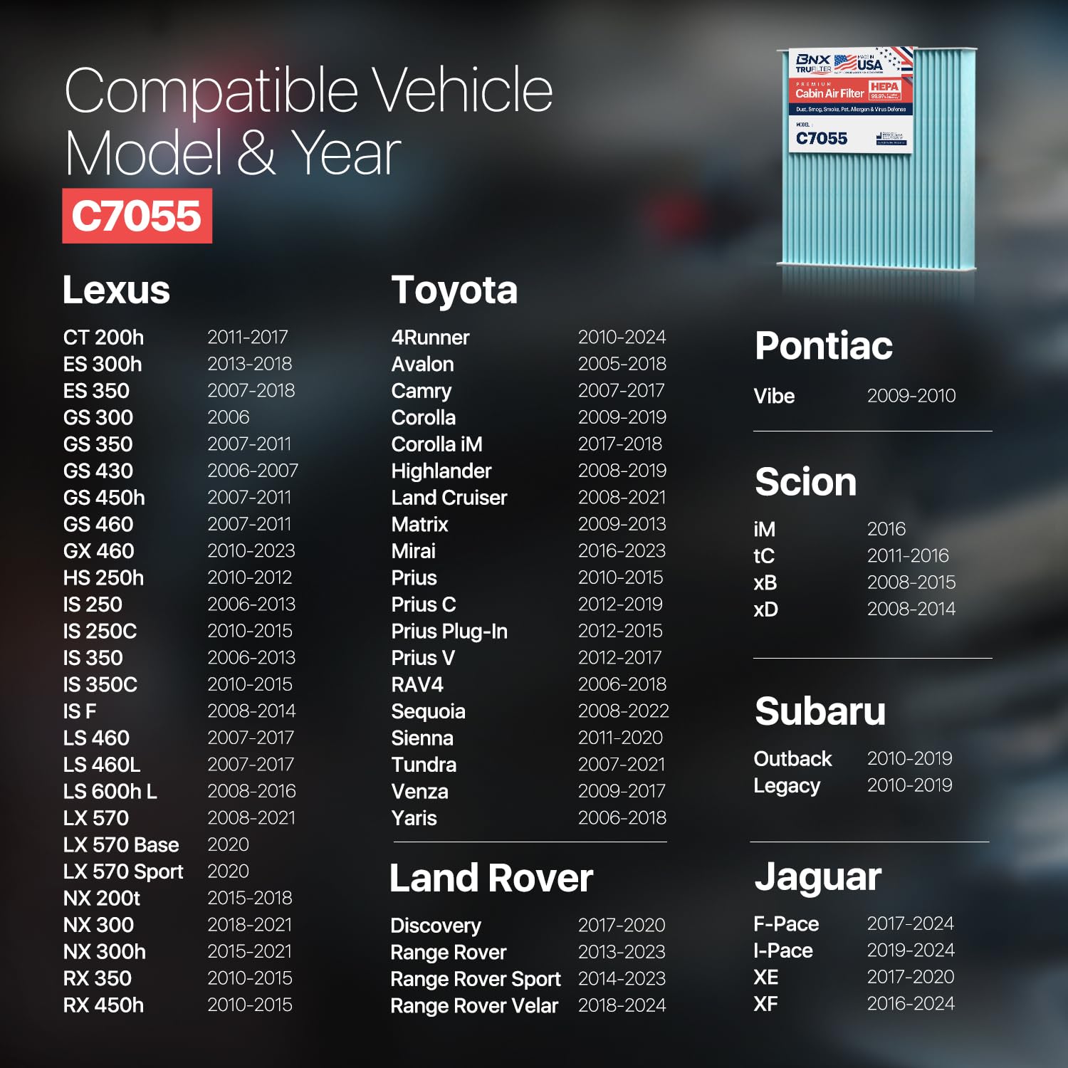 1390 avaliações para Filtro de Ar da Cabine BNX TruFilter C7055 HEPA 99,97% – Compatível com Toyota Camry, Corolla, Highlander, RAV4, Tundra, Prius, 4Runner; Subaru Outback, Legacy; Lexus – Fabricado nos EUA
