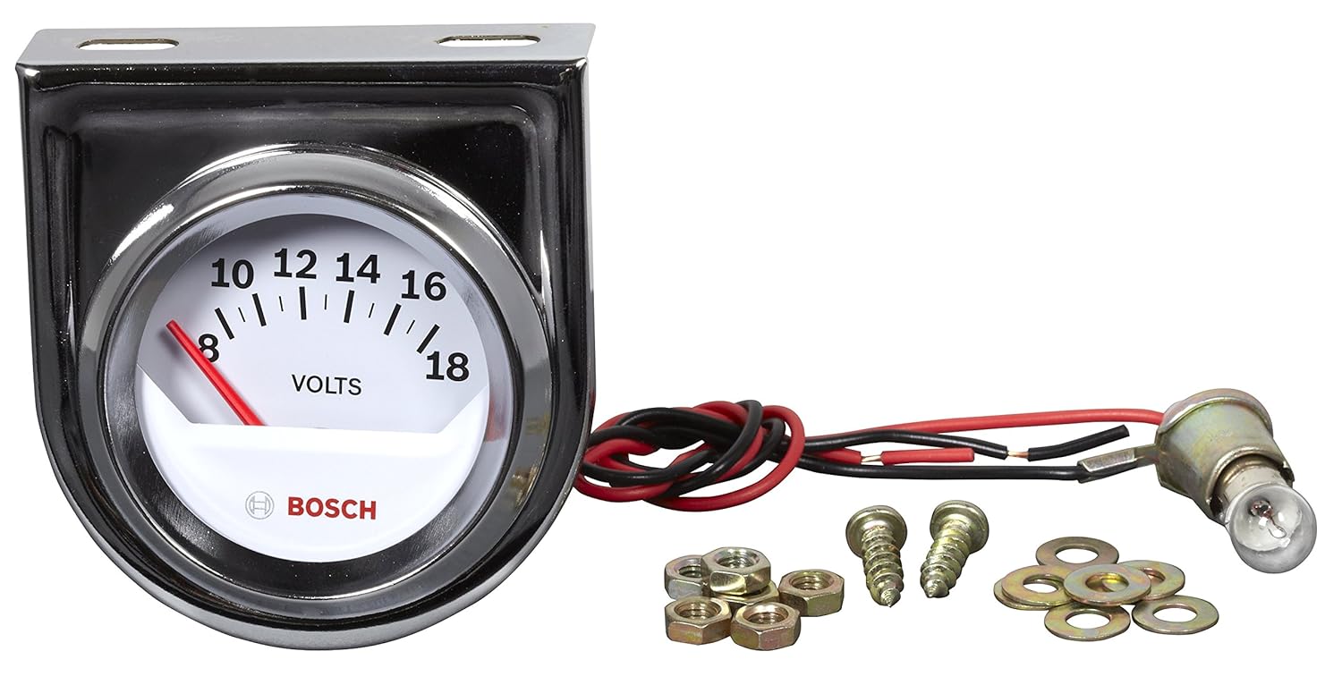 O Bosch SP0F000043 Style Line 2″ Electrical Voltmeter Gauge é um medidor de voltagem projetado para oferecer precisão e estilo em sistemas elétricos de 12 volts. Com um mostrador branco padrão de 2 polegadas, este medidor se encaixa perfeitamente em aberturas de 2-1/16 polegadas, proporcionando uma instalação fácil e rápida. O seu alcance de 8 a 18 volts, com um arco de 60 graus, permite que os usuários monitorem com precisão a voltagem do sistema, garantindo que tudo funcione dentro dos parâmetros ideais.