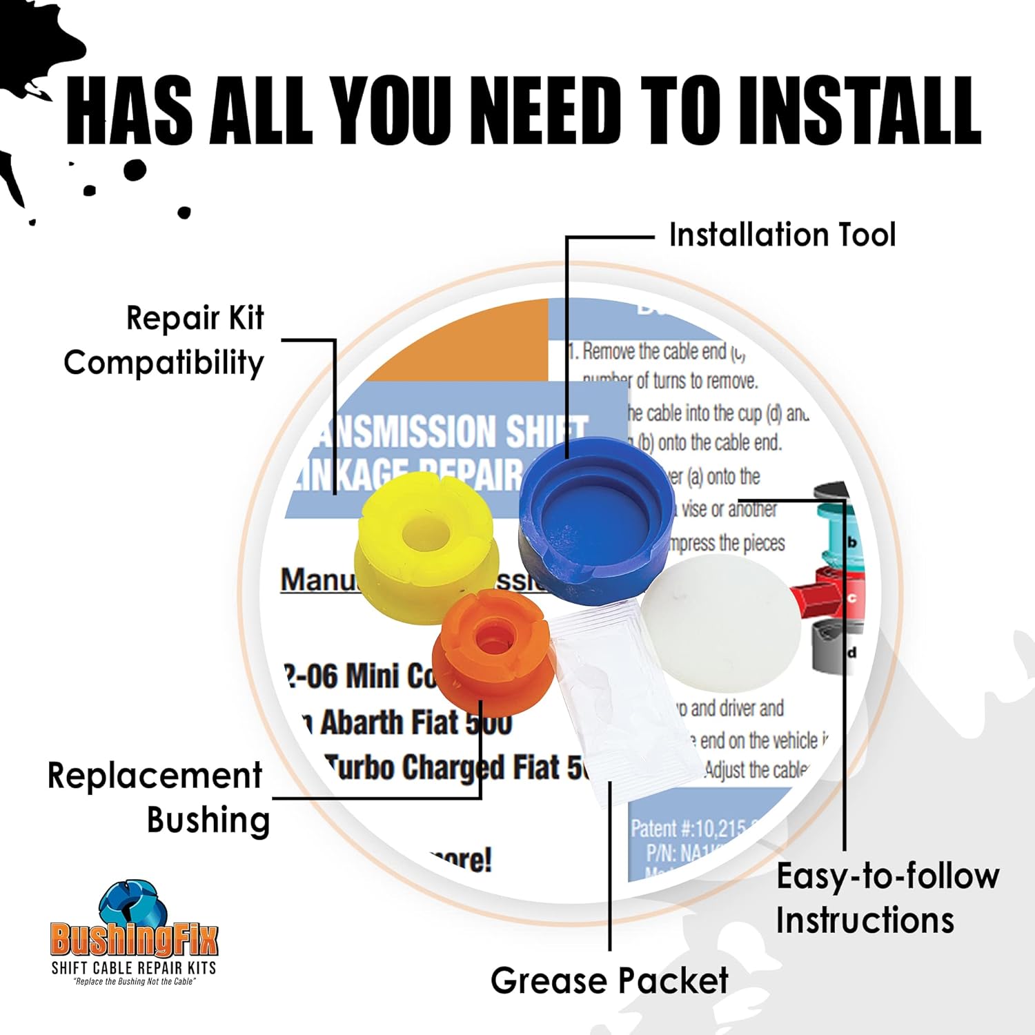 O BushingFix NA1Kit é a solução definitiva para quem busca reparar o cabo de mudança de marcha do seu veículo manual, especialmente para modelos Fiat 500 (não Turbo e não Abarth) de 2009 a 2017. Este kit de reparo de bucha de cabo de mudança é projetado para oferecer compatibilidade perfeita com uma variedade de transmissões manuais, incluindo Mini Cooper (2002 – 2006) e Porsche 911 (2012 – 2019, transmissões automáticas). Com a qualidade que você pode confiar, o kit é fabricado com materiais de alta durabilidade, garantindo que você tenha um substituto eficaz para buchas de cabo de mudança de marcha quebradas ou desgastadas.