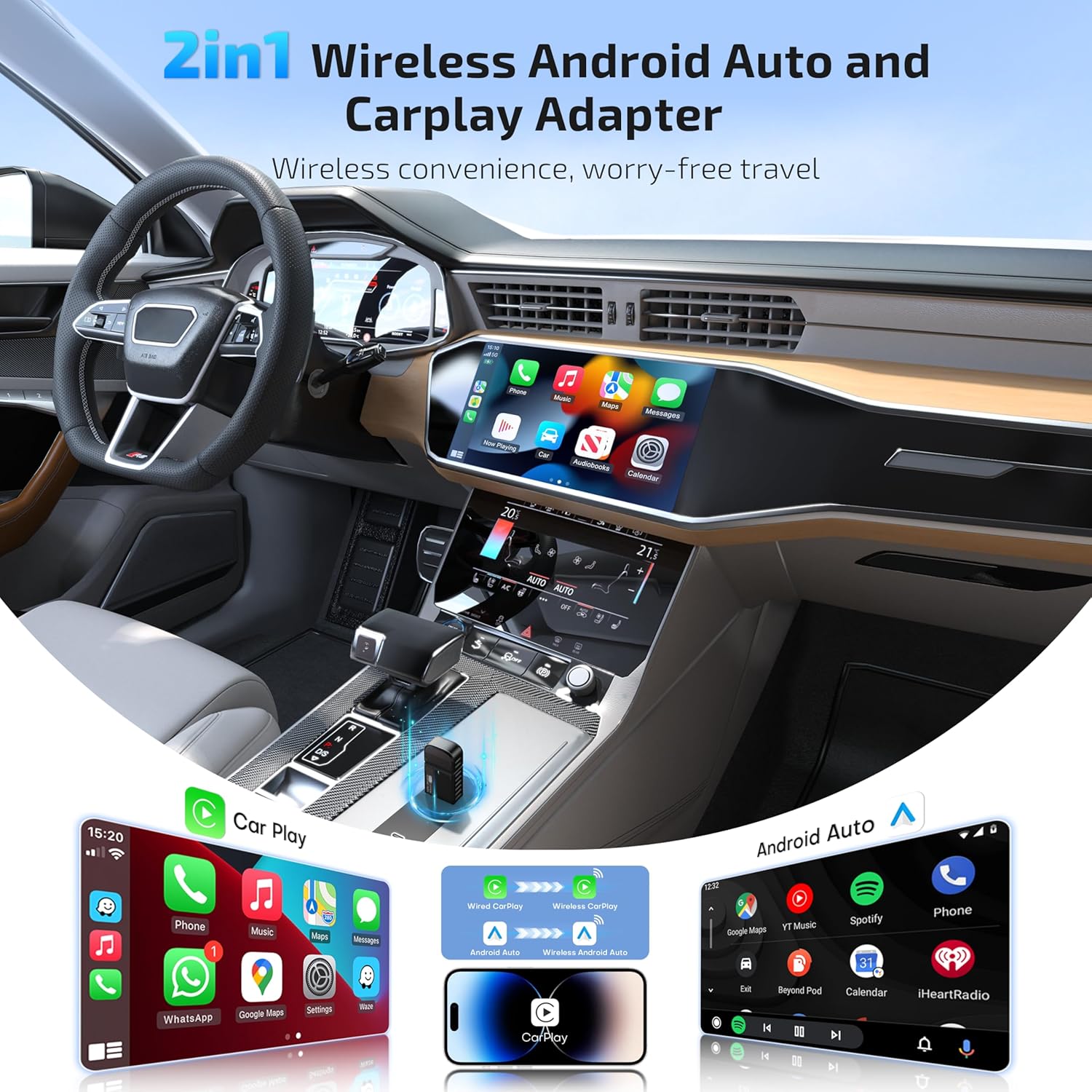 O ByteWave Wireless CarPlay é o adaptador 2-em-1 que transforma a experiência de dirigir em algo extraordinário. Com um poderoso processador dual-core, Bluetooth V5.3 e Wi-Fi de 5.8GHz, este dispositivo garante uma transmissão de áudio e vídeo eficiente e estável. Imagine navegar pelas ruas, ouvir suas músicas favoritas e interagir com assistentes de voz como se tivesse um segundo smartphone dentro do seu carro. Compatível com iPhones a partir do modelo 6 (iOS 10 ou superior) e dispositivos Android 12 e acima, o ByteWave atende a uma ampla gama de usuários, proporcionando uma experiência de condução aprimorada.
