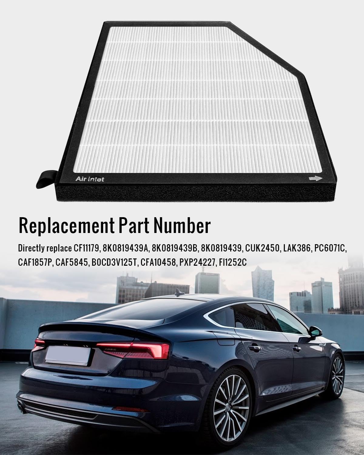 Filtro de Ar da Cabine com Carvão Ativado para Audi A4 A5 Q5 S4 S5 2010-2016 e Porsche Macan 2015-2018 - Substitui CF11179 8K0819439A 8K0819439B 8K0819439 CUK2450 LAK386 PC6071C