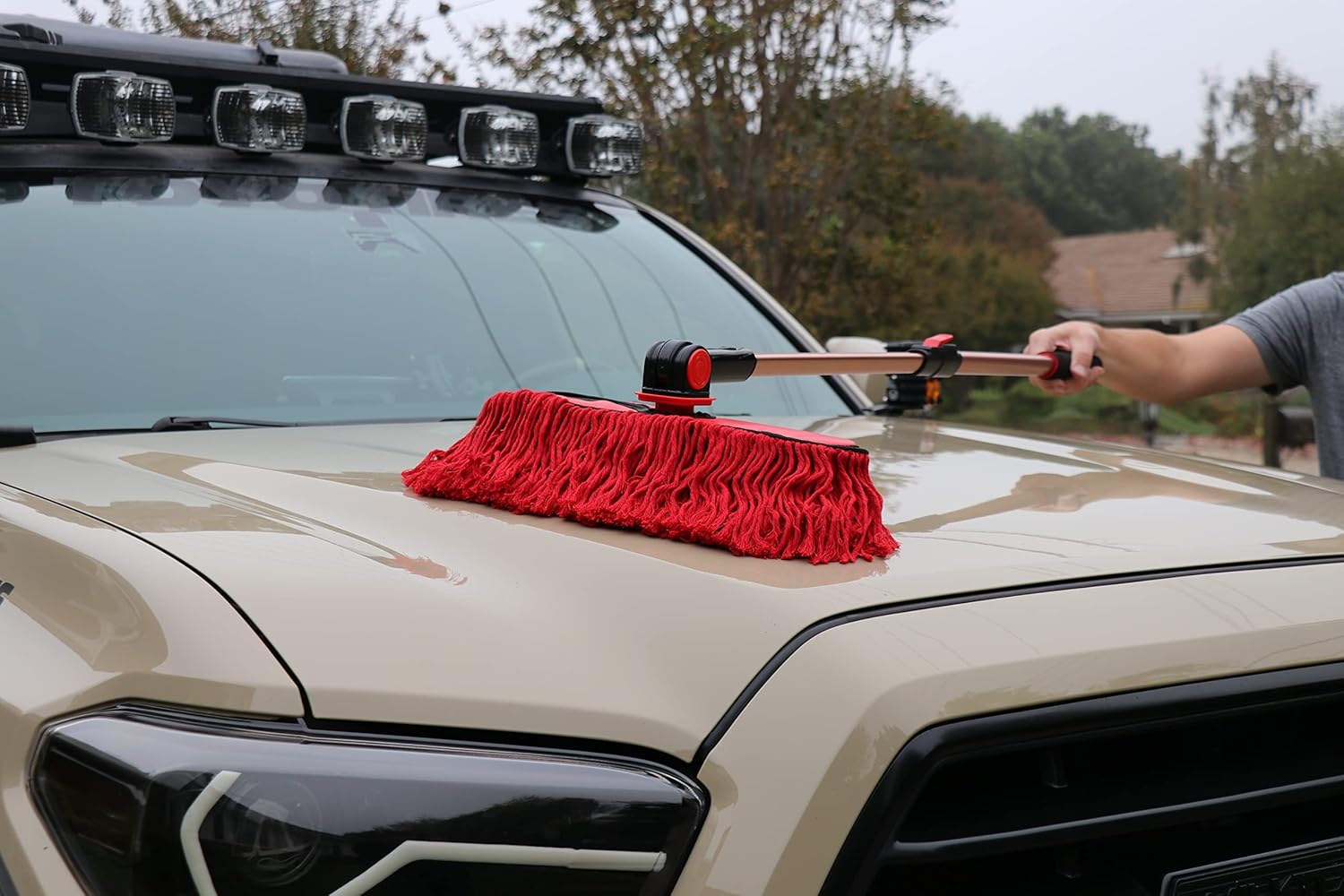 O cabo metálico do duster se estende de 24” a 42”, facilitando a limpeza de locais de difícil alcance, seja em seu veículo, em casa ou na garagem. Com o uso regular do Triple Threat Extension Duster, você pode aumentar o intervalo entre as lavagens de carros, trailers e RVs, economizando tempo e esforço.