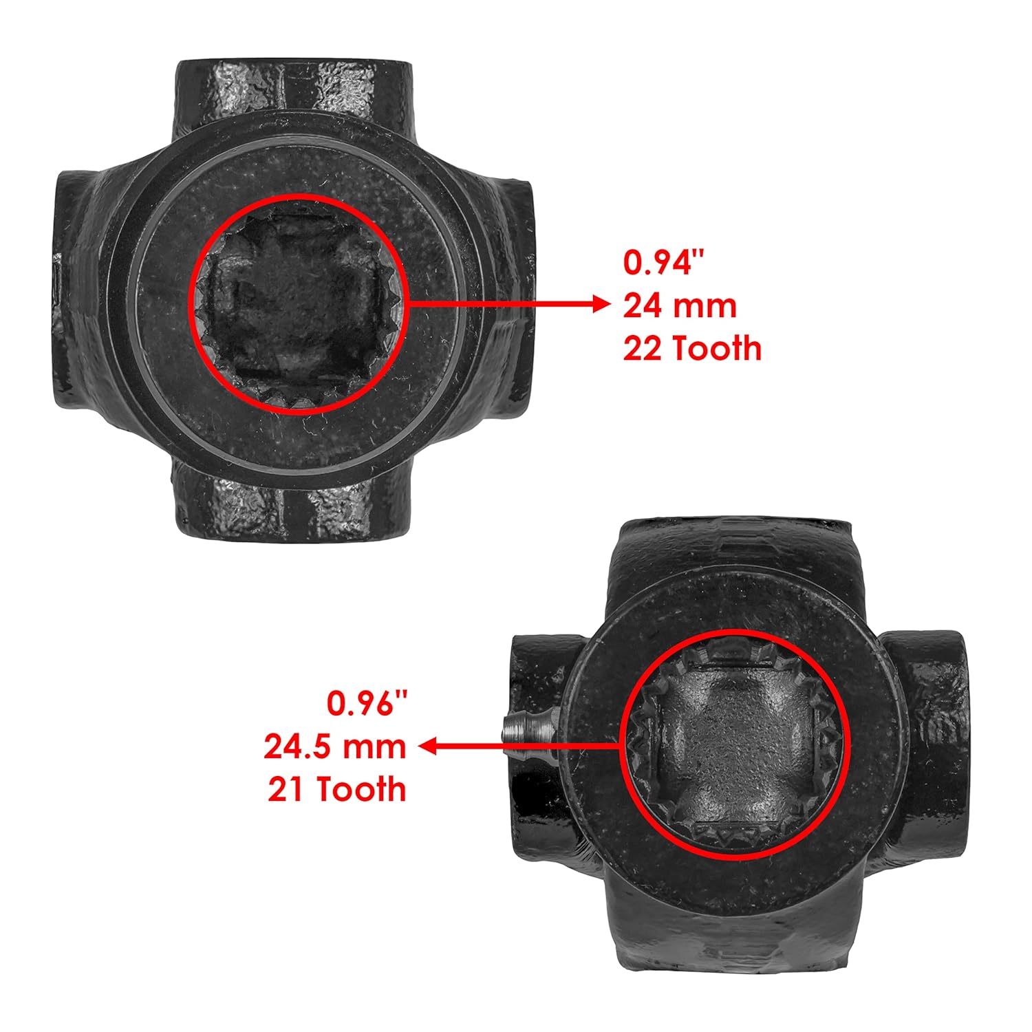 – Dimensões: Comprimento: 673 mm (26.5 in), Diâmetro Interno da Extremidade 1: 24 mm, 22 Dentes / Diâmetro Interno da Extremidade 2: 24.5 mm, 21 Dentes