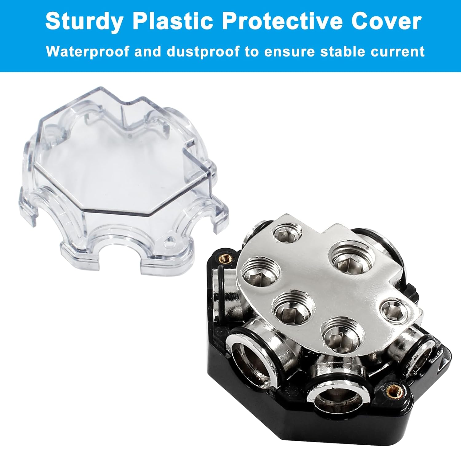7 avaliações para Bloco de Distribuição de Terra para Áudio Automotivo 5 Vias, 0 Gauge Entrada e Saída 2/4/8 Gauge, Divisor de Amplificador para Barco