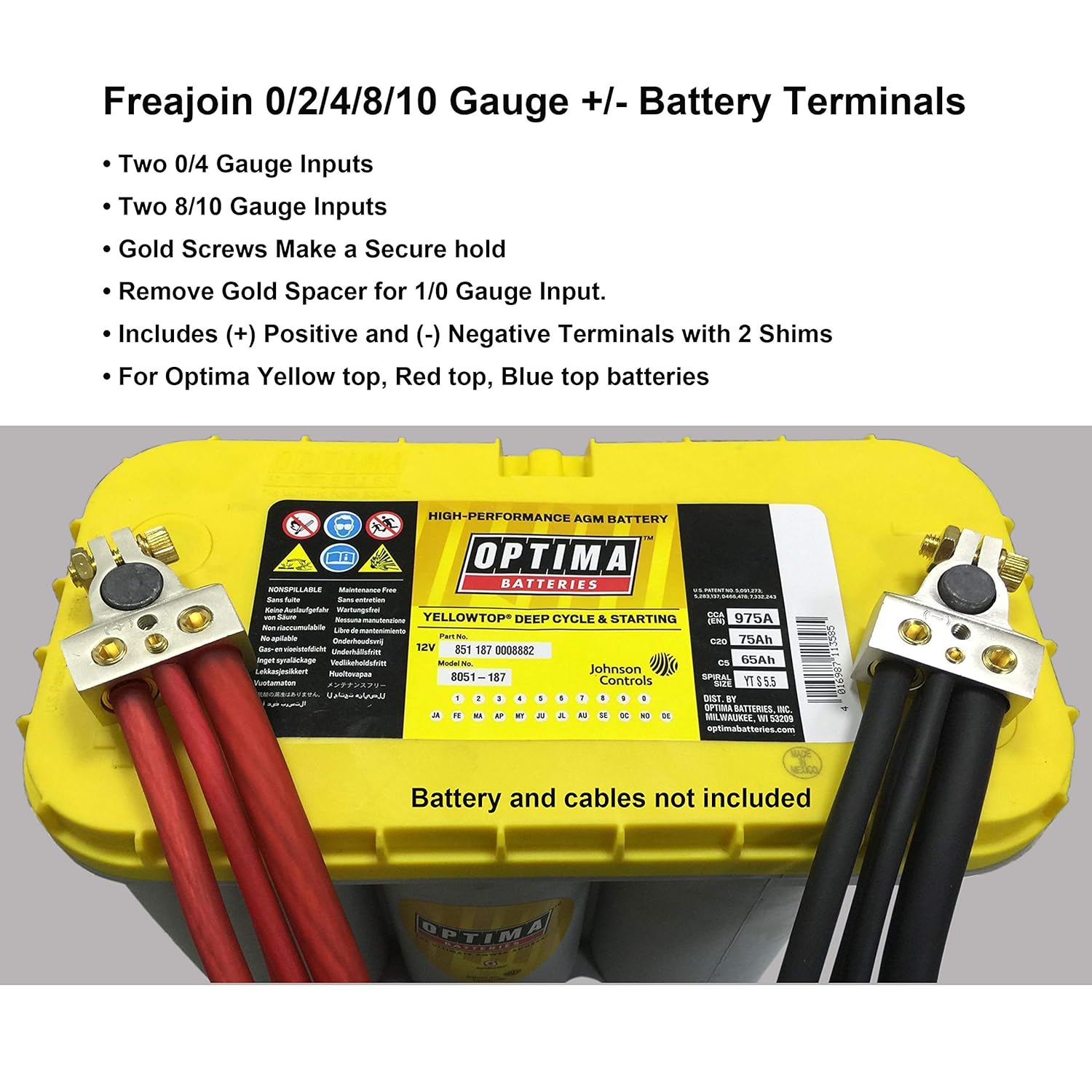 2. Escolha o Terminal Adequado: Selecione o terminal positivo ou negativo conforme necessário, utilizando as entradas de 0/4 ou 8/10 AWG conforme a aplicação.