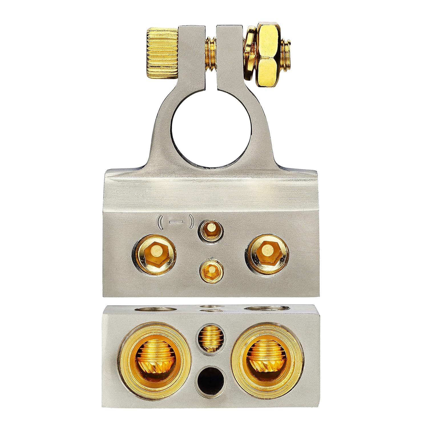 - (2) Entradas de 8/10 Gauge: Oferecem flexibilidade para sistemas que não necessitam de tanta potência, mantendo a eficiência na condução elétrica.