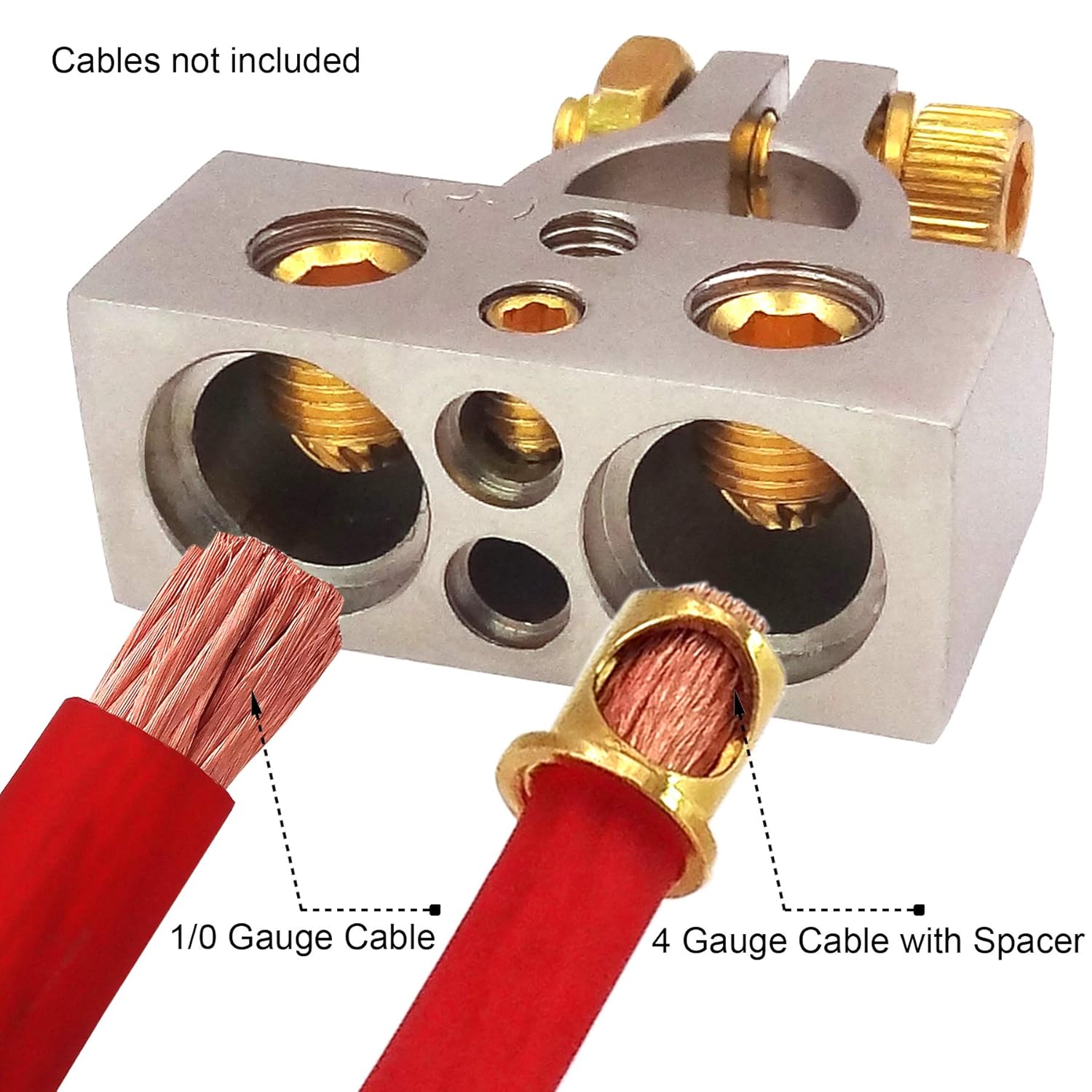 - (2) Entradas de 0/4 Gauge: Permitem uma conexão robusta e confiável, ideal para aplicações que exigem alta corrente.