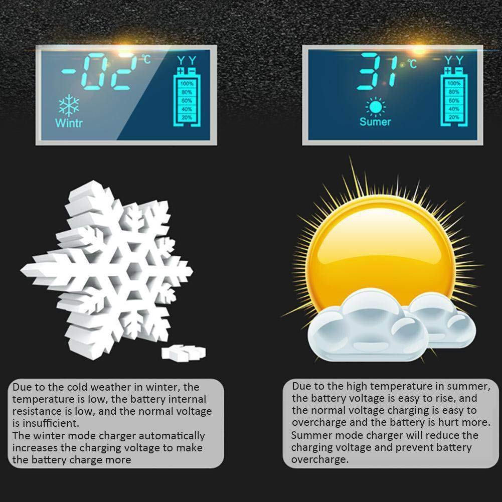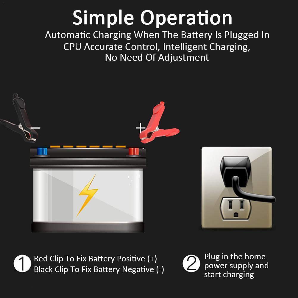 – Carregamento Automático: Este carregador possui um sistema de carregamento automático que protege sua bateria contra sobrecargas. É compatível com a maioria dos tipos de baterias, incluindo cálcio, GEL, AGM e baterias úmidas. Além disso, ele pode ajudar a restaurar baterias drenadas e sulfatas, prolongando sua vida útil.