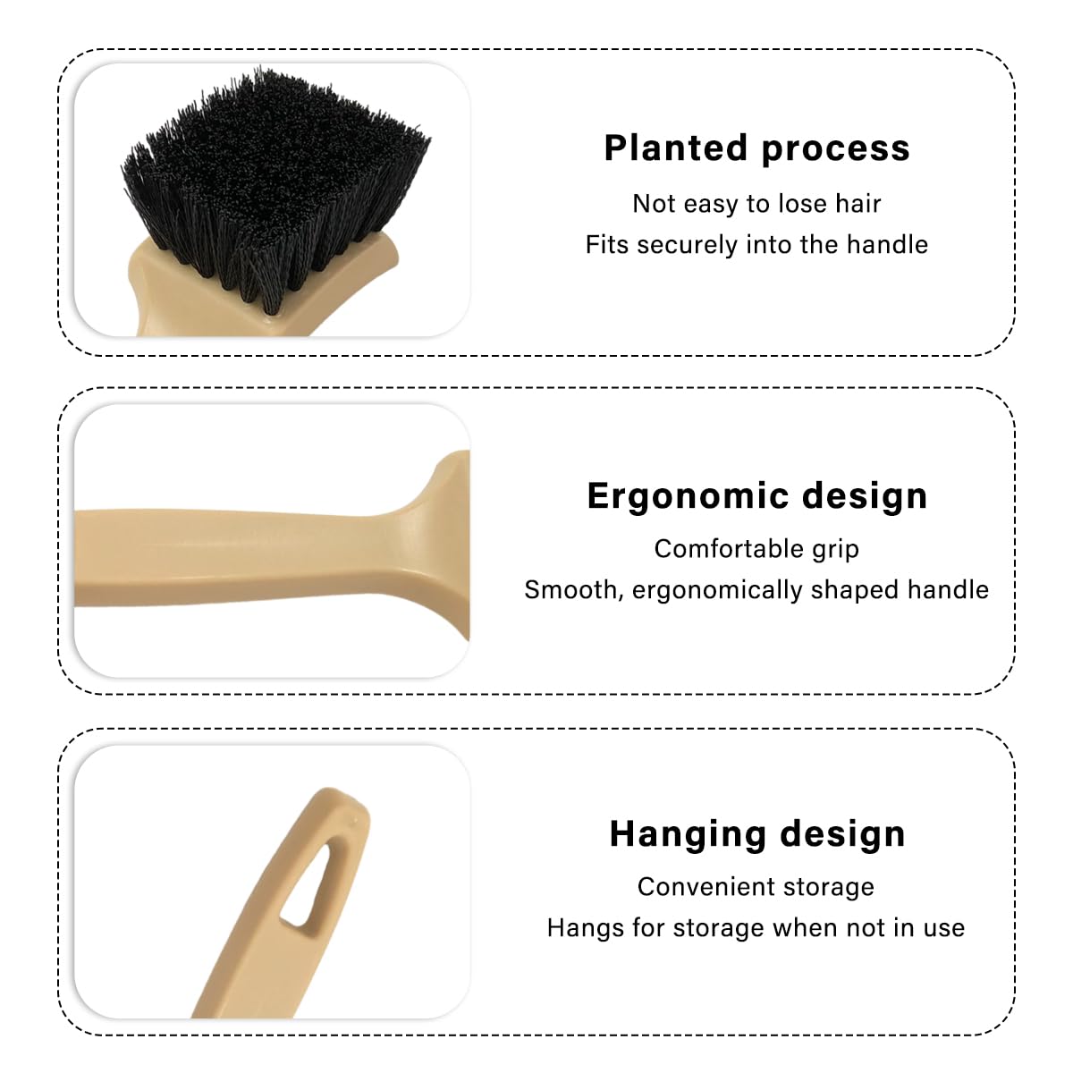 A escova de limpeza de carpete para carros é a ferramenta ideal para quem busca eficiência e praticidade na hora de manter o interior do veículo impecável. Com cerdas rígidas que penetram profundamente nas superfícies, esta escova é perfeita para deslodar sujeira e detritos com o mínimo de esforço. Especialmente projetada para alcançar áreas de difícil acesso, como cubos de roda, fendas dos assentos e tapetes texturizados, garante um trabalho minucioso e eficaz.