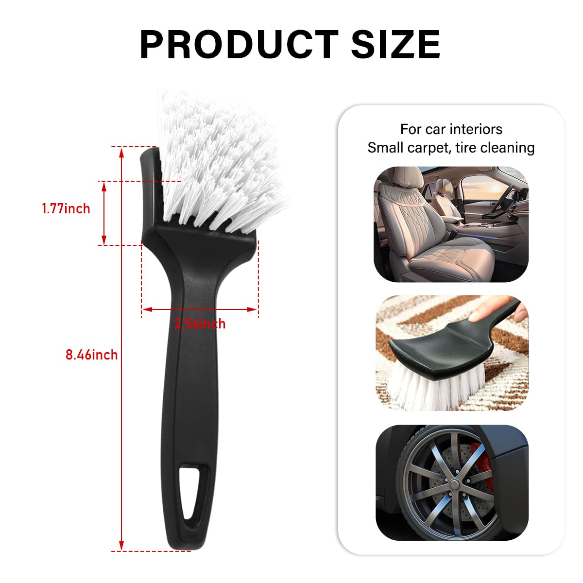 – Aplicação Versátil: Esta escova se adapta perfeitamente a diversas tarefas de limpeza, desde a limpeza do interior do carro e pneus até a manutenção de carpetes e estofados em casa. Seu design universal assegura um desempenho confiável em uma variedade de superfícies e ambientes.