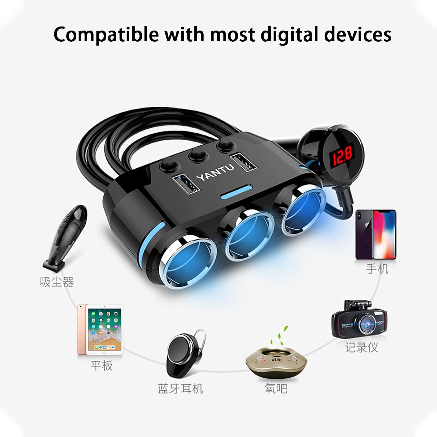 O Adaptador de Isqueiro para Carro é a solução perfeita para os proprietários de Mercedes Benz GLE 350/450/53 AMG/580/63 AMG S dos anos 2020 a 2024. Este dispositivo inovador, que opera em DC12V e DC24V, é um distribuidor de múltiplas tomadas com interruptor independente e um voltímetro LED integrado, projetado para atender às suas necessidades de carregamento e monitoramento de bateria enquanto você está na estrada.