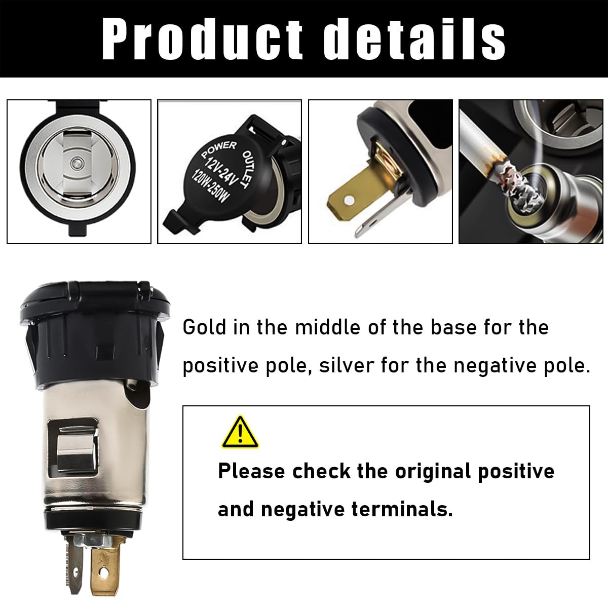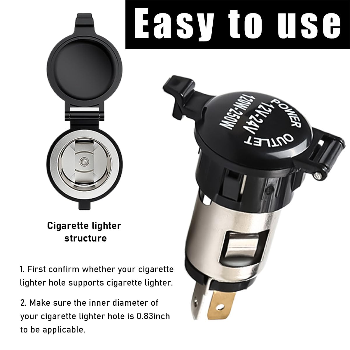 - Amplamente Aplicável: Este soquete de isqueiro possui uma tensão de entrada de 12V ou 24V e uma potência de entrada de 120W ou 250W. É amplamente utilizado na maioria dos veículos disponíveis no mercado, incluindo carros de 12V, sedãs, caminhões, SUVs, motocicletas e caminhões de 24V. Confirme as especificações do seu veículo antes de realizar o pedido.