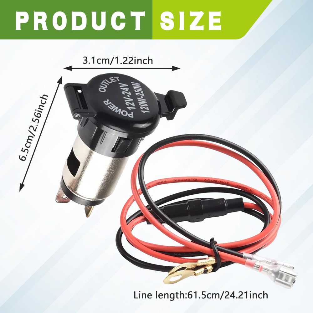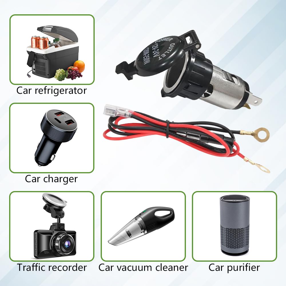 O Soquete de Isqueiro para Carro também conta com uma tampa à prova d’água, que protege contra manchas de água e poeira, aumentando a segurança durante o uso. A instalação é simples: basta conectar o fio vermelho ao eletrodo positivo e o fio preto ao eletrodo negativo do carro, garantindo que a instalação esteja correta antes de utilizar.