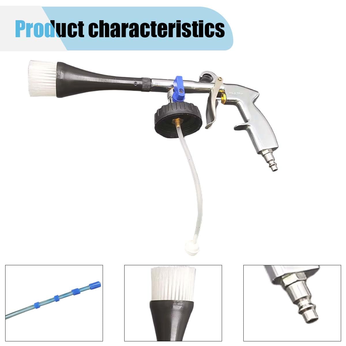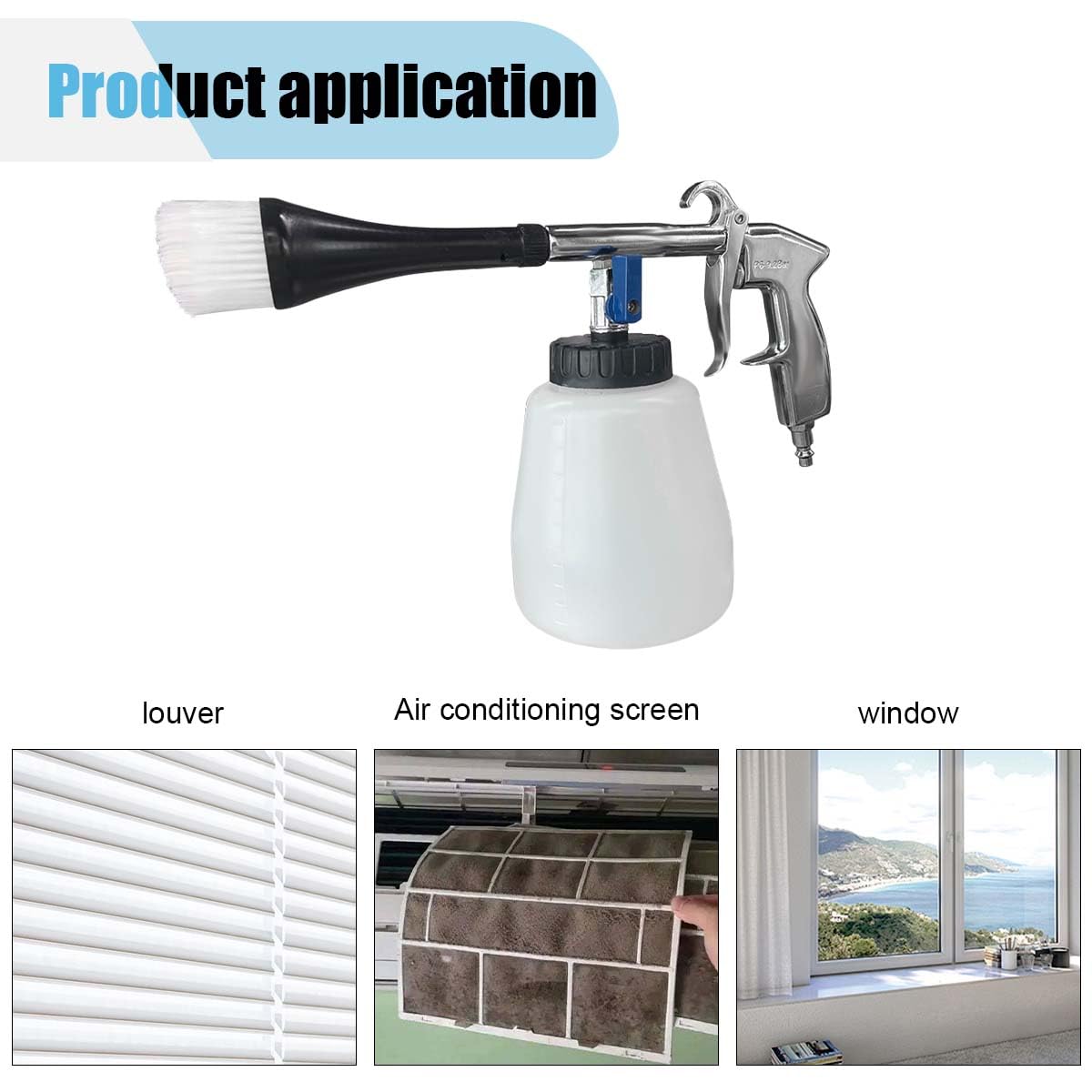 O Kit de Limpeza de Carros com Pistola de Ar de Alta Pressão é a solução definitiva para quem busca manter o interior do veículo impecável. Composto por uma pistola de limpeza, uma garrafa plástica de 1 litro, um bico de escova de nylon e um bico em forma de trompete, este kit é ideal para a limpeza de rodas, ar-condicionados, volantes, janelas, carpetes, assentos, vidros, cintos de segurança, interiores de couro, móveis e diversas fendas.