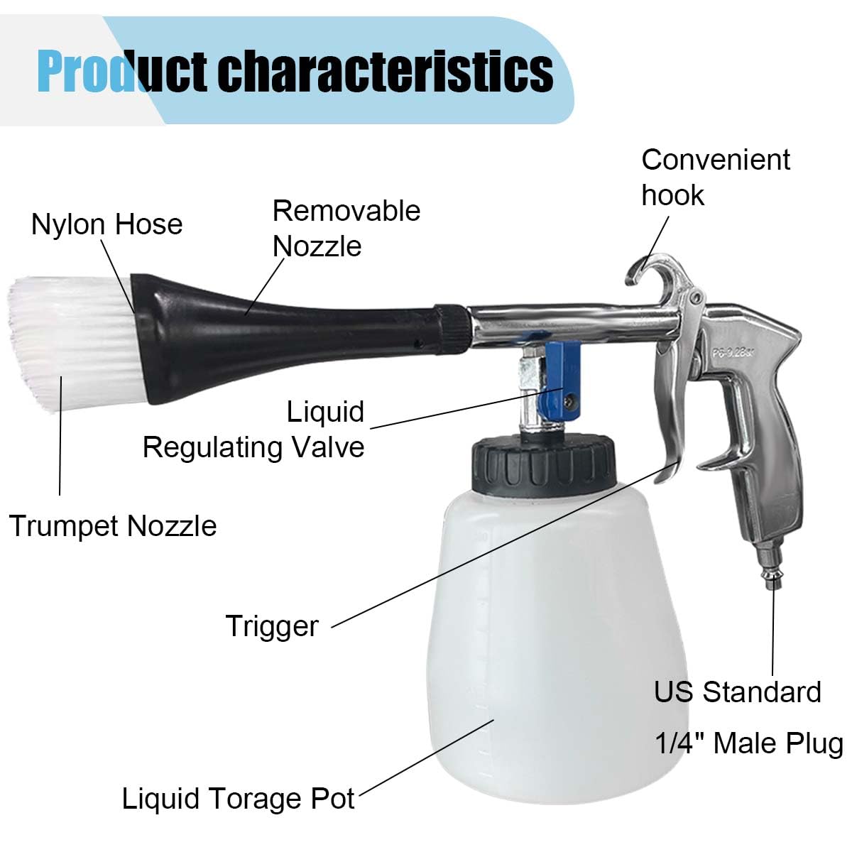 – Dimensões: Pistola de limpeza com design ergonômico para conforto no manuseio.