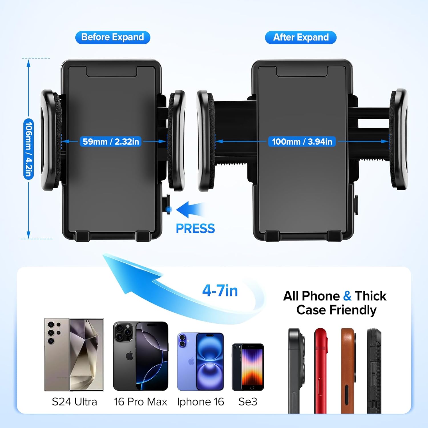 – Liberação Rápida com Um Toque: Priorizando a segurança em movimento, um simples pressionar do botão lateral neste suporte de copo para celular libera instantaneamente seu telefone do suporte, enquanto o design seguro do expansor de porta-copos mantém sua bebida estável até que você precise dela.