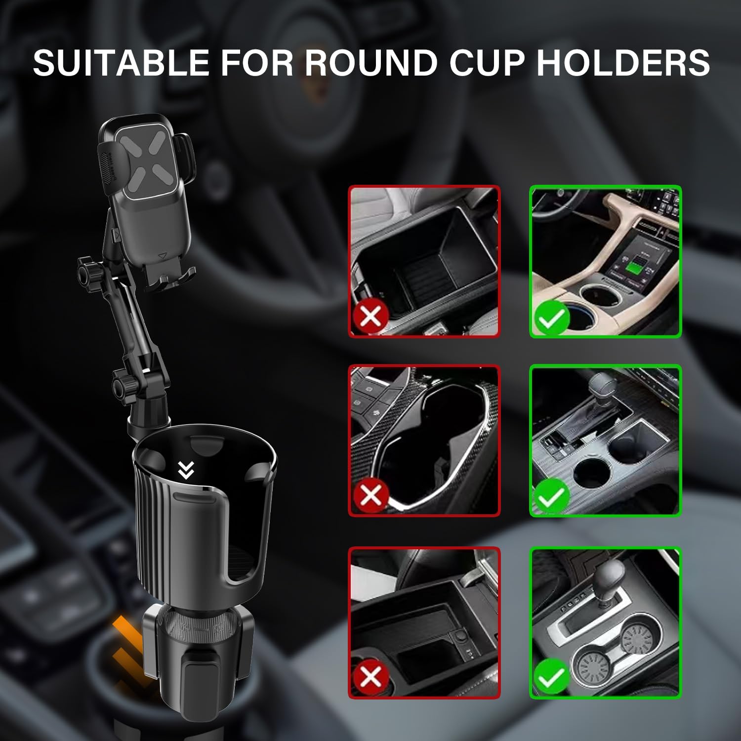 – Fácil Instalação: A instalação é simples e rápida. Basta inserir o suporte no porta-copos original do carro e girar a lâmina no sentido horário para expandir o adaptador e fixar a base firmemente.