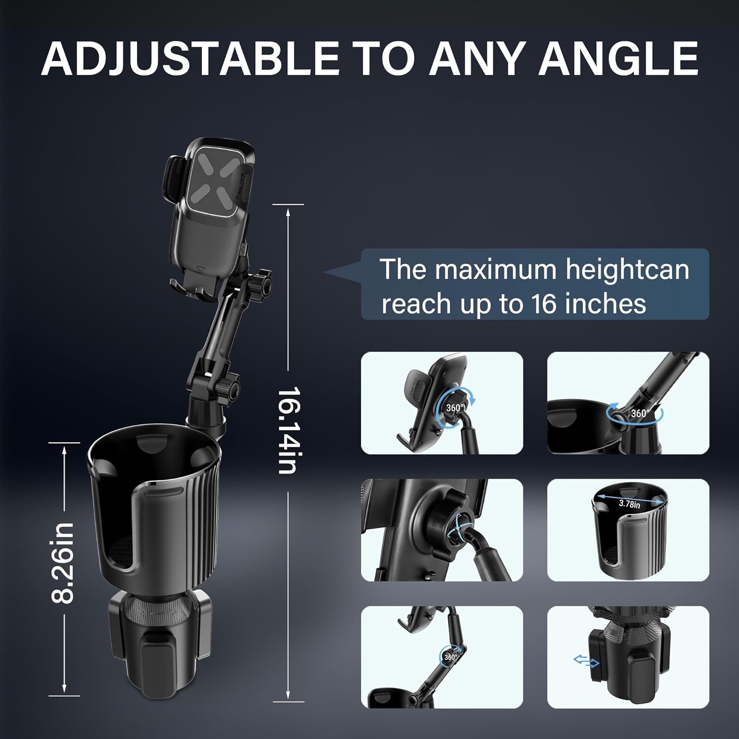 – Compatibilidade Ampla: O suporte é compatível com smartphones de 4” a 7” e pode acomodar garrafas de diferentes tamanhos, variando de 2,5 a 3,8 polegadas de diâmetro. O fundo do suporte conta com um pad de borracha que protege o copo e minimiza ruídos.