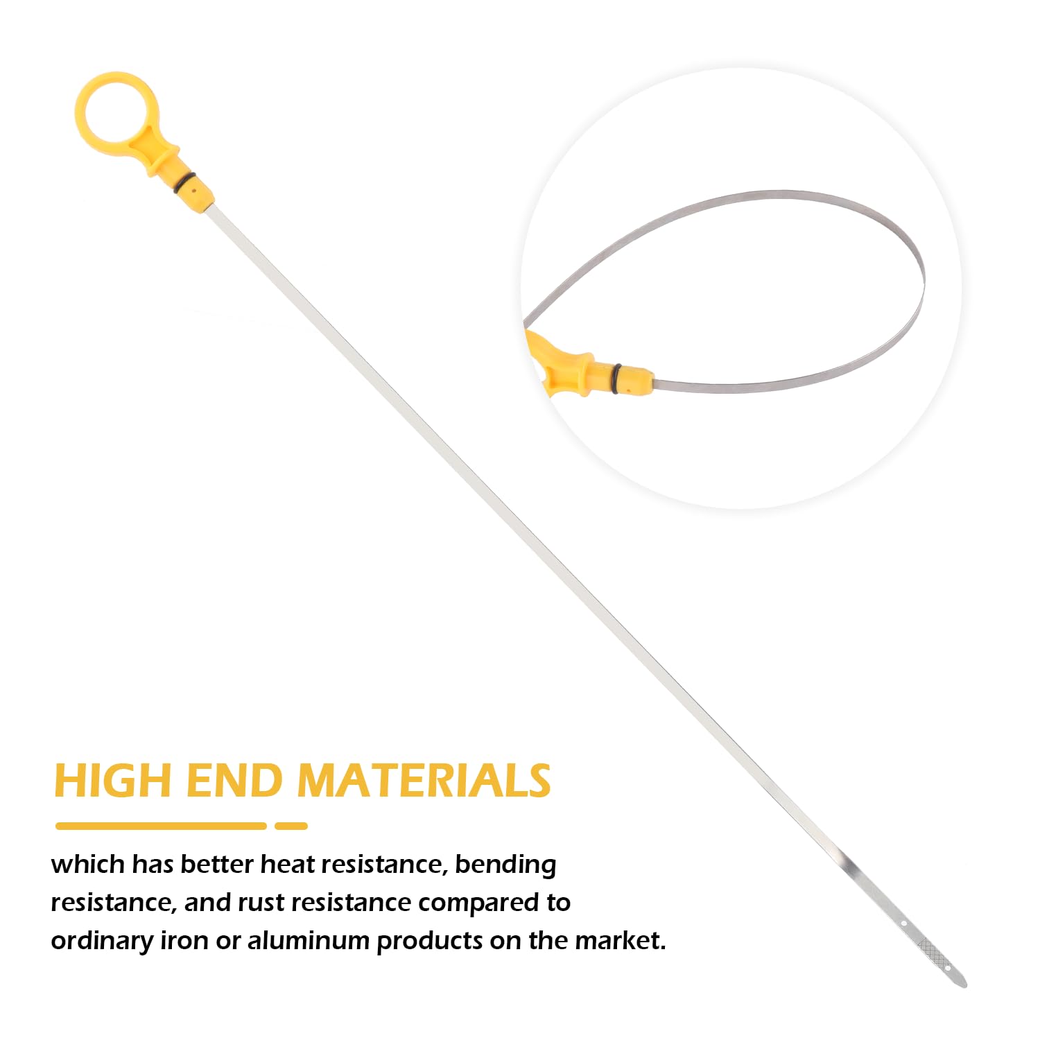 Este medidor de óleo é fabricado em aço inoxidável de alta qualidade, que oferece melhor resistência ao calor, resistência à flexão e resistência à corrosão em comparação com produtos comuns de ferro ou alumínio disponíveis no mercado. Além disso, o anel O na parte superior proporciona um vedamento perfeito, evitando que o medidor se solte.