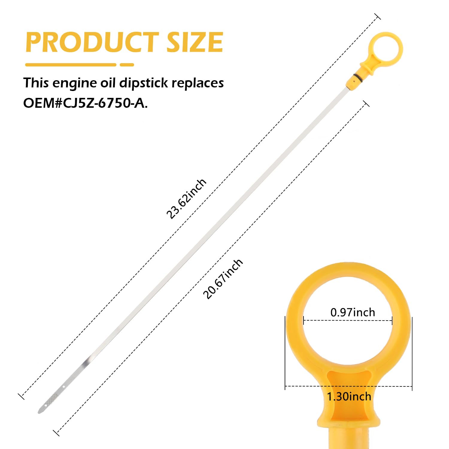 O Substituto do Medidor de Óleo do Motor OEM#CJ5Z-6750-A é a solução ideal para quem busca precisão e confiabilidade na verificação do nível de óleo do motor. Com um comprimento de inserção de 20,67 polegadas e um comprimento total de 23,62 polegadas, este medidor é um substituto perfeito para dipsticks originais que estão desgastados ou danificados. Antes de realizar a compra, é fundamental verificar o número OEM, tamanho, ano e modelo do seu veículo para garantir que este medidor é o que você precisa.