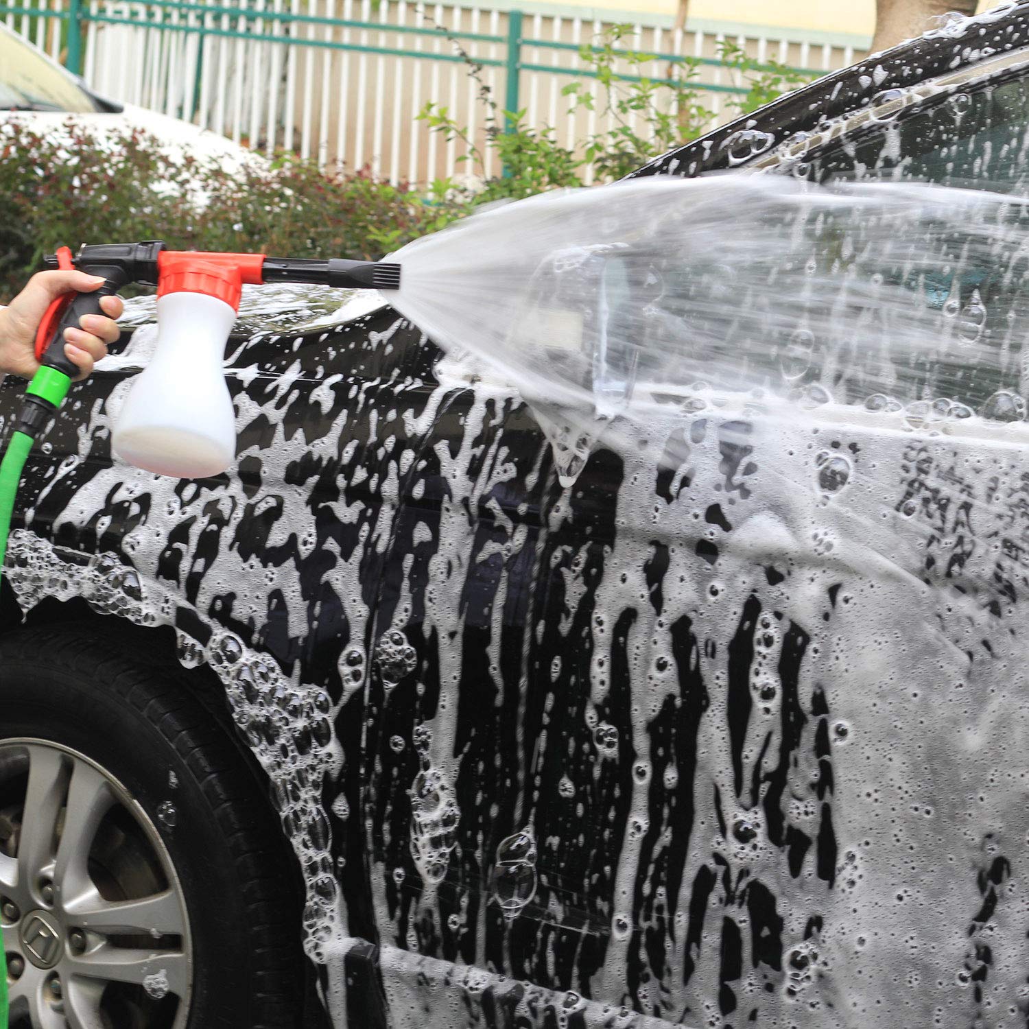 1. Conecte a Car Foam Gun Juqiboom à mangueira de jardim padrão.