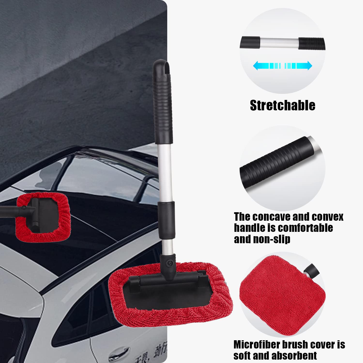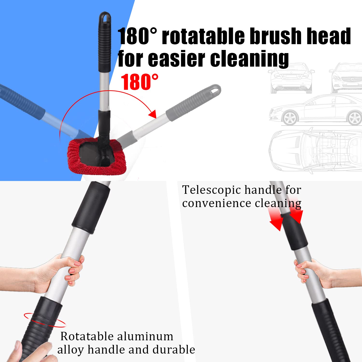 🚚 Ajuste Universal: Com um comprimento de 27 cm (10,6 polegadas) e extensão de até 45 cm (17,7 polegadas), o cabo retrátil de alumínio permite uma ampla área de limpeza, facilitando o acesso a locais de difícil alcance, como o teto do carro. Compatível com todos os tipos de veículos, incluindo carros, caminhões, SUVs, pickups e MPVs.