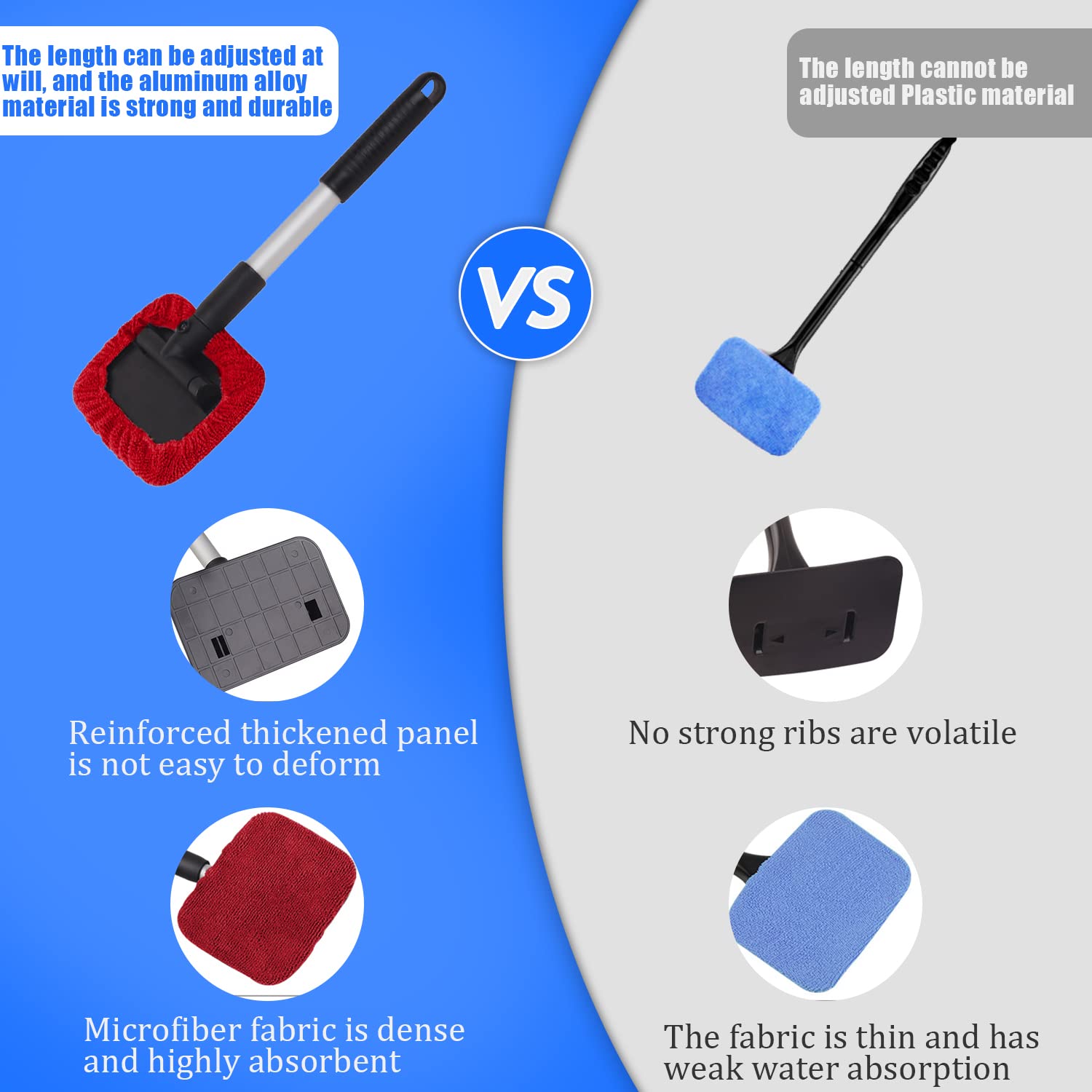 🚗 Material de Alta Qualidade: O Limpa-Vidro é fabricado com plástico ABS de qualidade e tubo de alumínio, garantindo durabilidade e leveza. Os panos e toalhas de microfibra possuem excelente capacidade de absorção de água, sem deixar fiapos, marcas ou resíduos, proporcionando uma limpeza impecável.