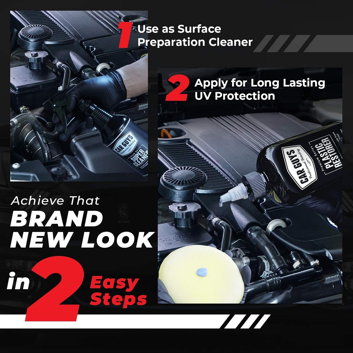 – Kit Completo: Inclui Super Cleaner 18 Oz, Restaurador de Plástico 8 Oz, aplicador de espuma e toalha de microfibra.