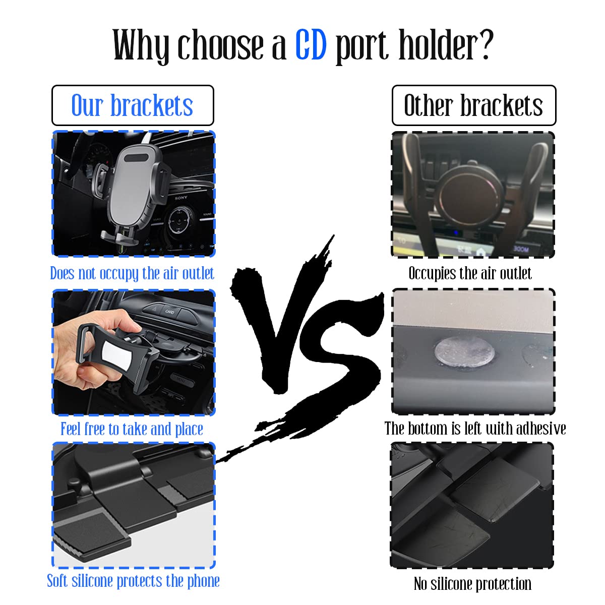 – Estabilidade e Sem Interferência: O suporte para celular conta com um design de bloqueio de asa e silicone antiderrapante, formando um sistema de dupla fixação que se mantém firme no slot de CD, sem deixar arranhões. A base do suporte não danifica o slot de CD e pode ser ajustada em largura, garantindo que seu CD continue funcionando perfeitamente, sem obstruir sua visão.