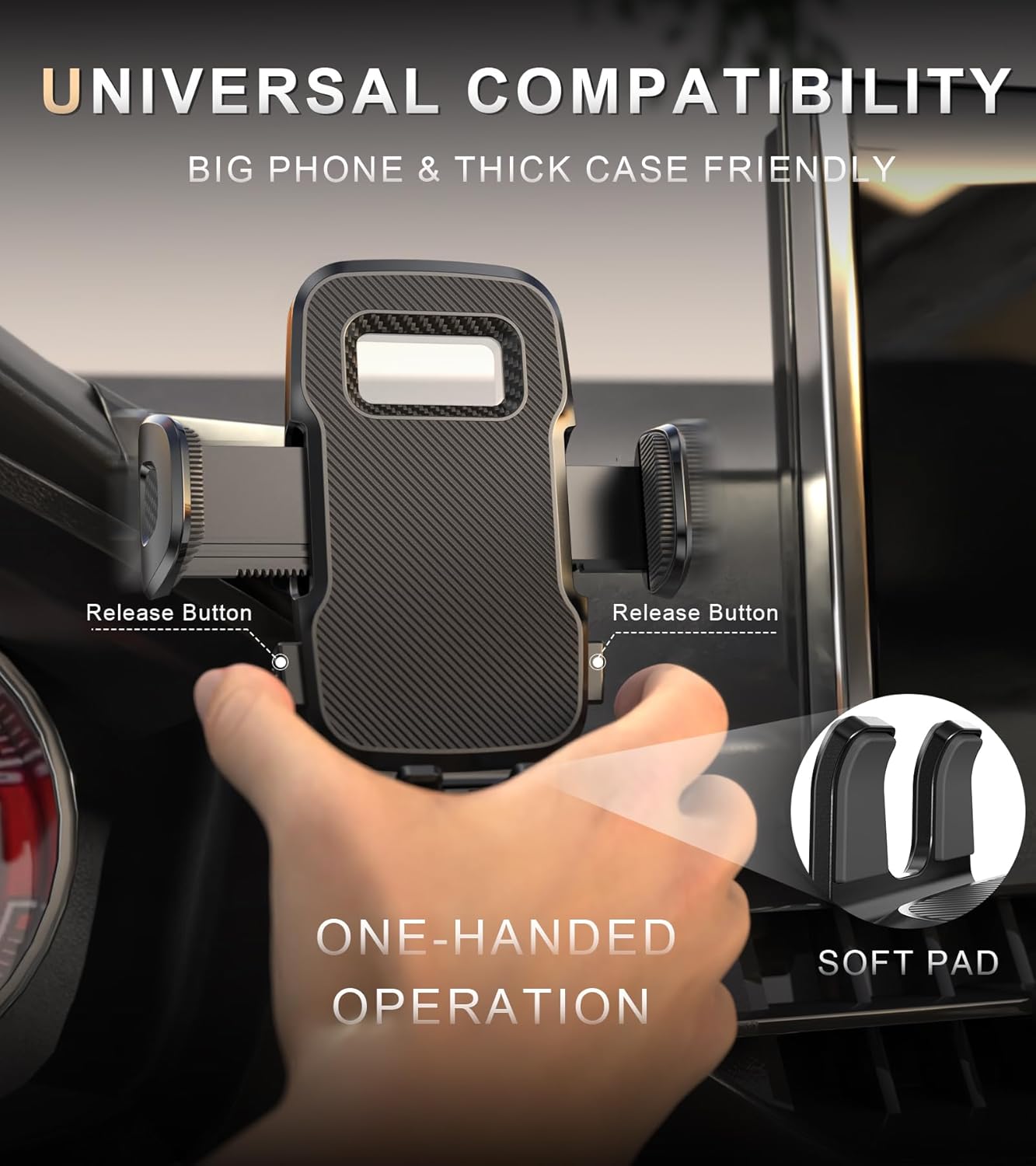 Compatível com uma ampla gama de smartphones, o suporte é ideal para dispositivos de 4 a 7 polegadas, incluindo todos os modelos da linha iPhone 16, 15, 14, 13, 12, 11 Pro Max, XR e a série Samsung Galaxy Note e Flip. A estrutura do suporte é projetada para ser resistente a choques, garantindo que seu celular permaneça seguro mesmo em estradas irregulares.