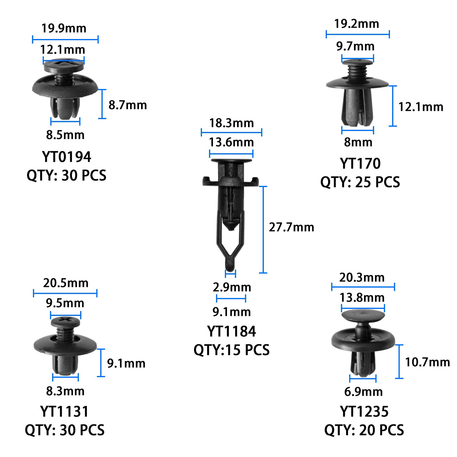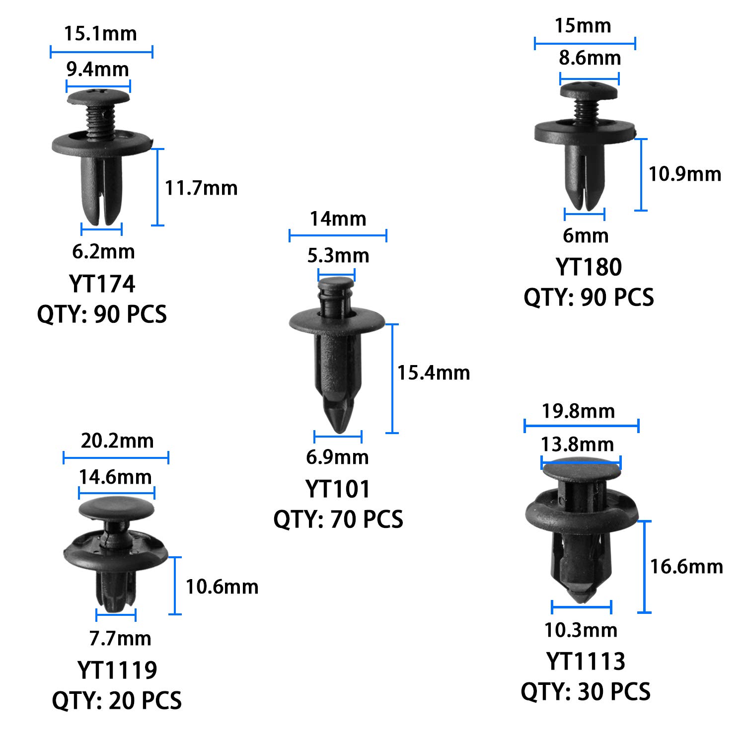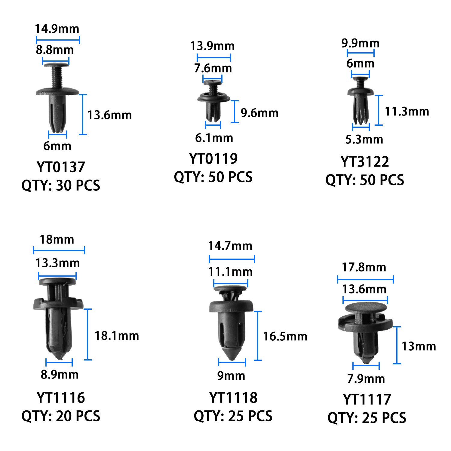 UNIVERSAL FIT PARA A MAIORIA DOS CARROS: O kit é compatível com uma ampla gama de marcas, incluindo GM, Ford, Chrysler, Toyota, Honda, Nissan, Mazda e Chevy. Isso significa que, independentemente do seu veículo, você encontrará os clips que atendem às suas especificações.