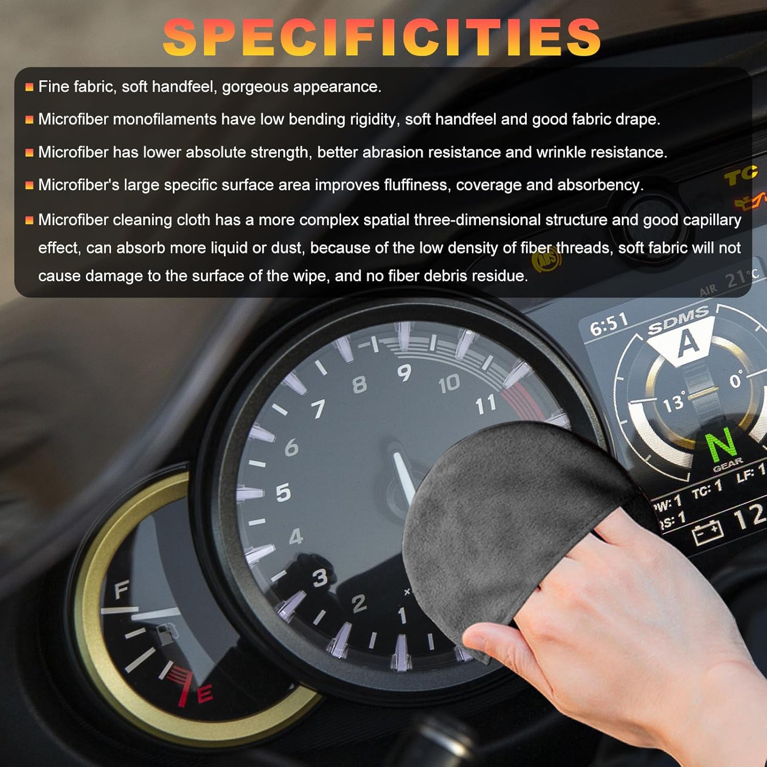 A principal função deste pano é remover poeira, impressões digitais e manchas, permitindo que você tenha uma visualização clara e nítida das informações exibidas no painel do seu carro. O design anti-rugas do pano assegura que ele mantenha sua forma e eficácia mesmo após várias utilizações. Além disso, sua ergonomia foi cuidadosamente projetada para um agarre confortável, tornando a limpeza uma tarefa simples e prática.