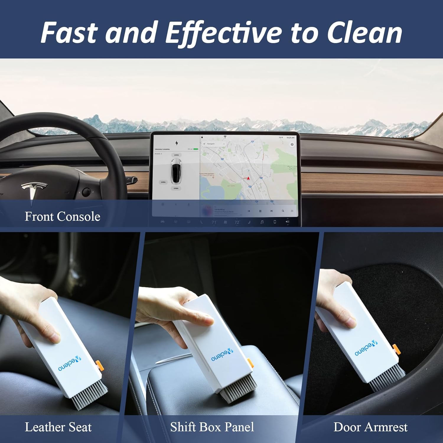 The car interior brush is soft and well made. The large, high-density bristle brush is perfect for cleaning just about any surface in your car, from the front console, door armrest, shift box and car seats.
