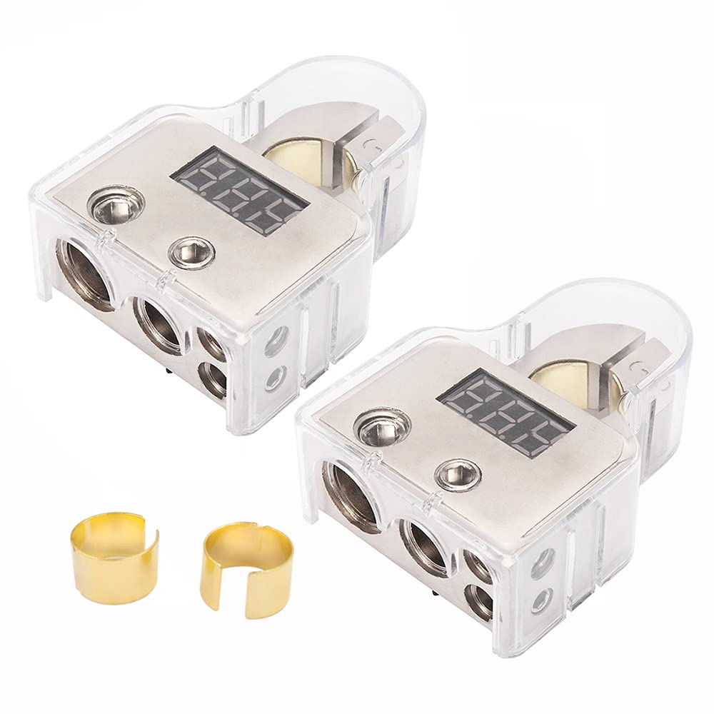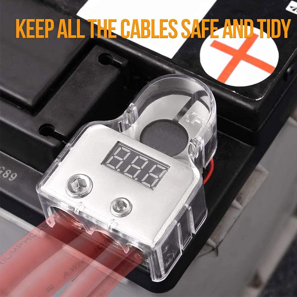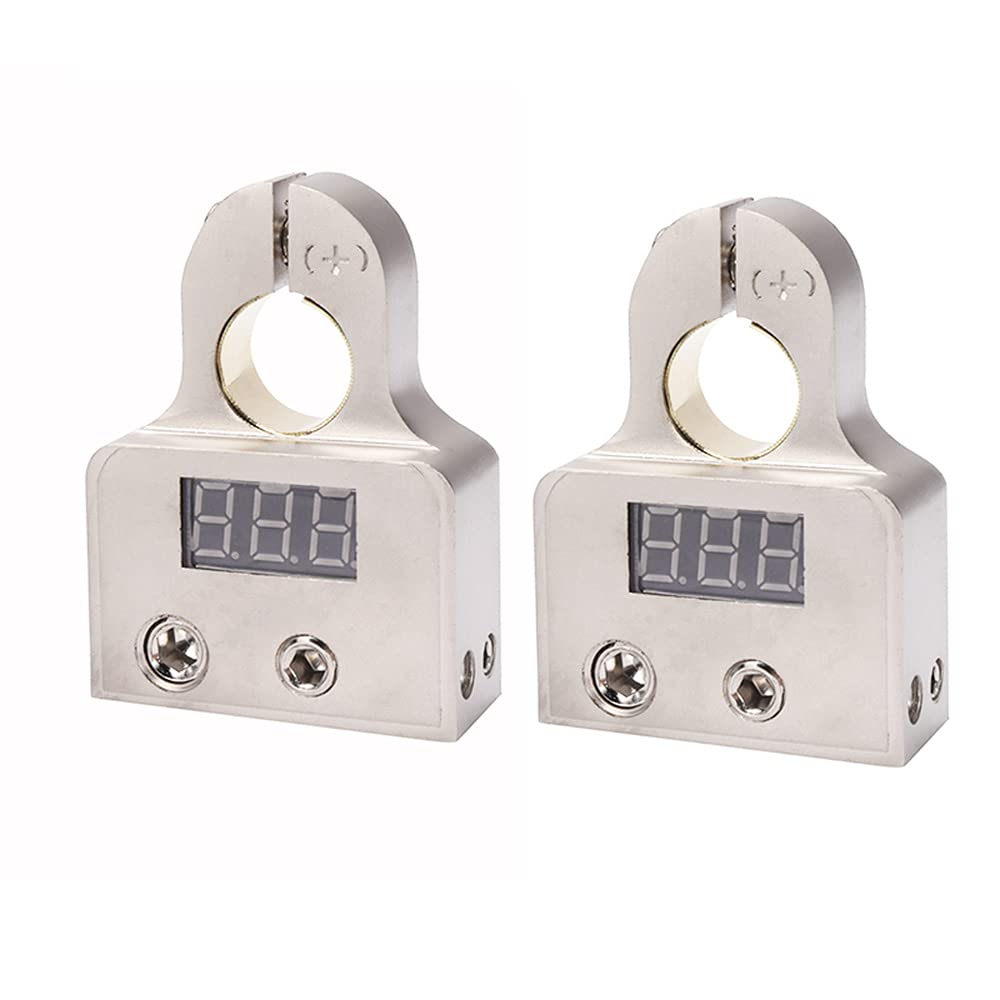 ### Conectores de Terminal de Carro com Display de Voltagem para Garras Positivas e Negativas (Prata – 2 Peças)