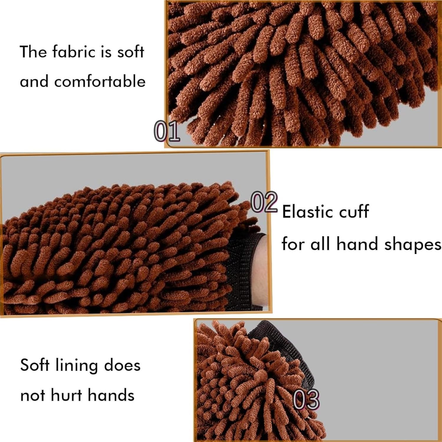 Além de sua eficácia, nossas luvas de lavagem de carro são duráveis e reutilizáveis. Podem ser lavadas e reutilizadas várias vezes, tornando-se uma opção ecológica para o cuidado do seu carro. A natureza suave e peluda da microfibra chenille garante que nossa luva de lavagem seja segura para todos os tipos de pintura, vidro e outras superfícies delicadas, proporcionando um brilho sem manchas e sem fiapos.