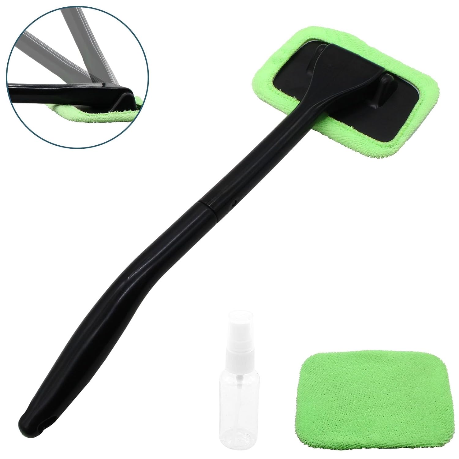 Kit de Limpeza de Vidros de Carro com Ferramenta para Parabrisa, Cabo Extensível e 2 Almofadas de Microfibra Reutilizáveis - Verde