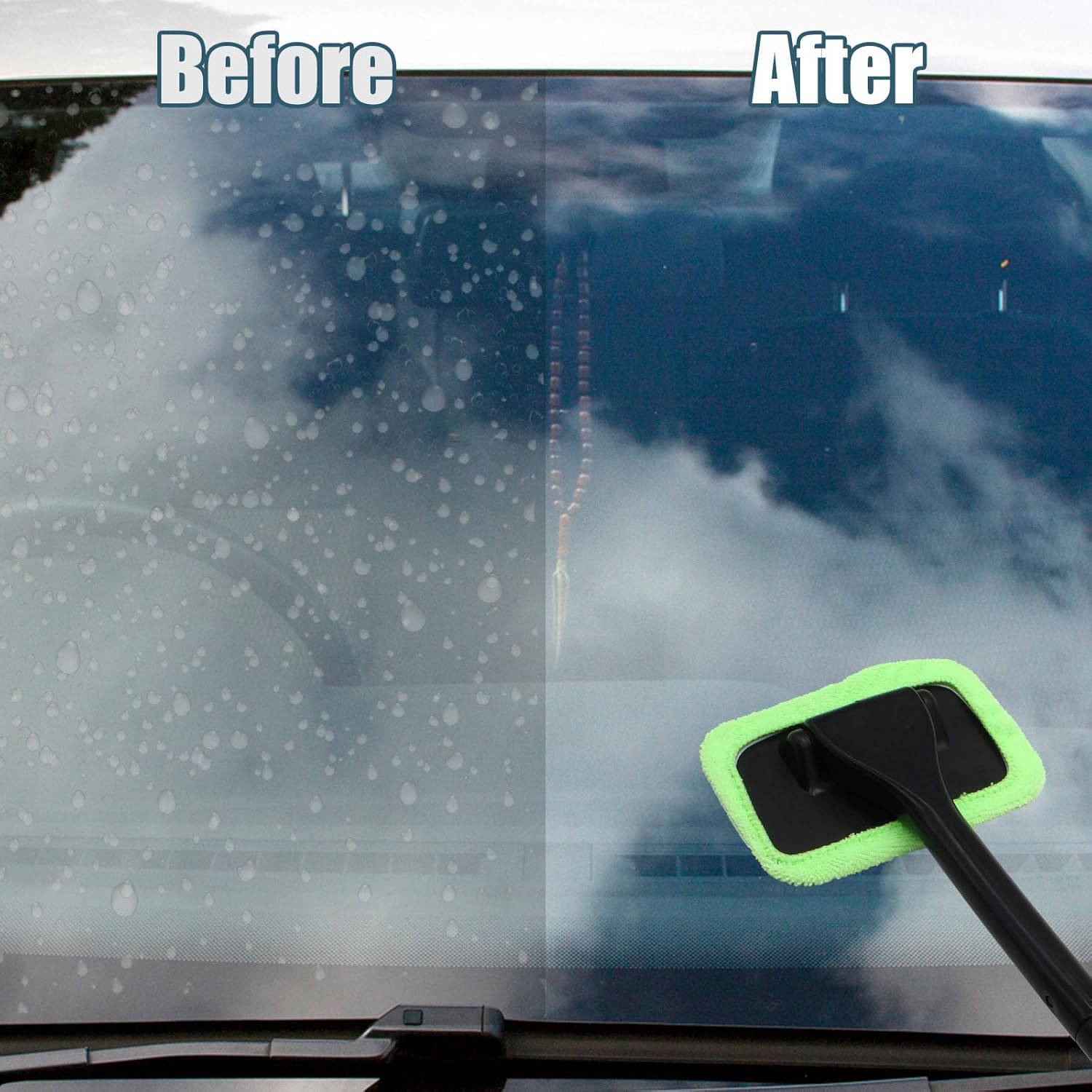 Kit de Limpeza de Vidros de Carro com Ferramenta para Parabrisa, Cabo Extensível e 2 Almofadas de Microfibra Reutilizáveis – Verde