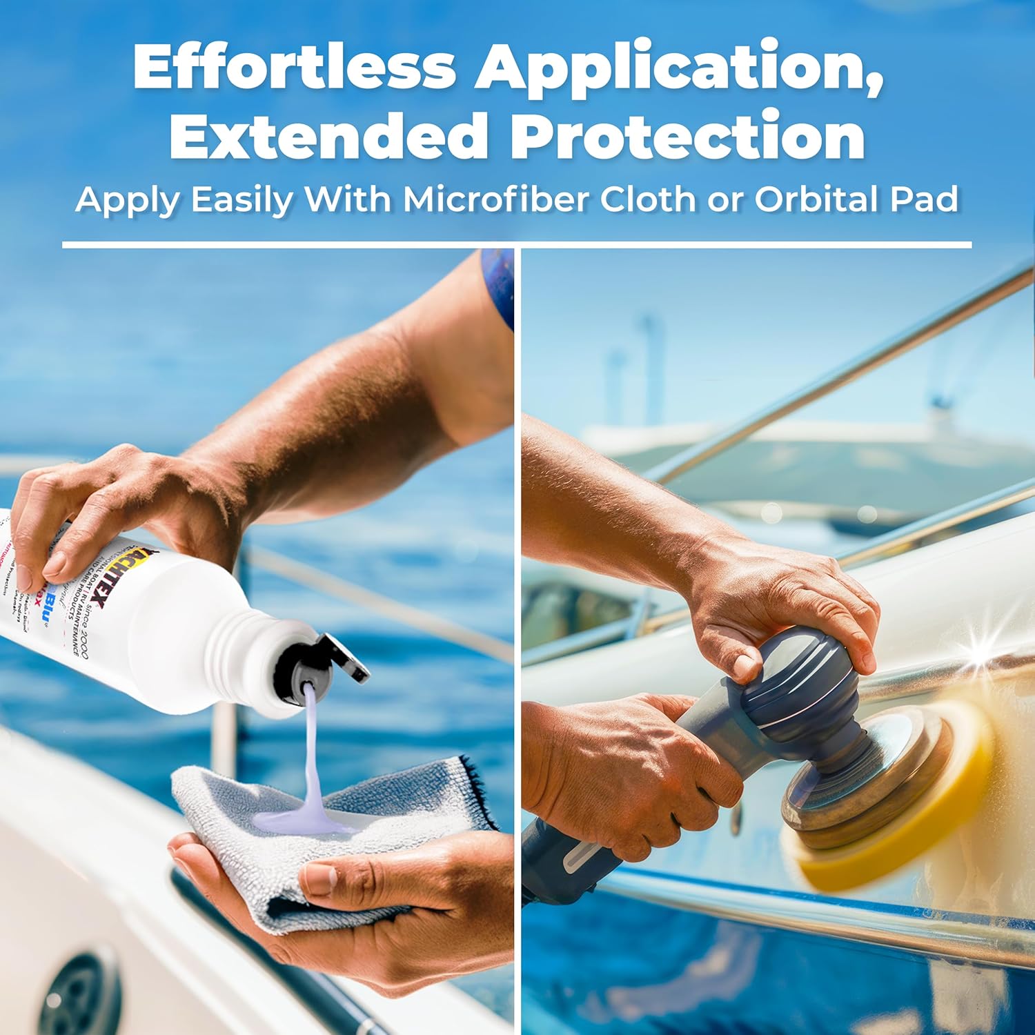 SEGURO PARA SEU VEÍCULO: A fórmula de alta tecnologia do Yachtex é segura para uma variedade de acabamentos, incluindo acrílicos, esmaltes, urethanes, gel-coats e clear coats. O Carnuba Wax foi projetado para proporcionar um acabamento de qualidade de showroom, ideal para qualquer tipo de revestimento.