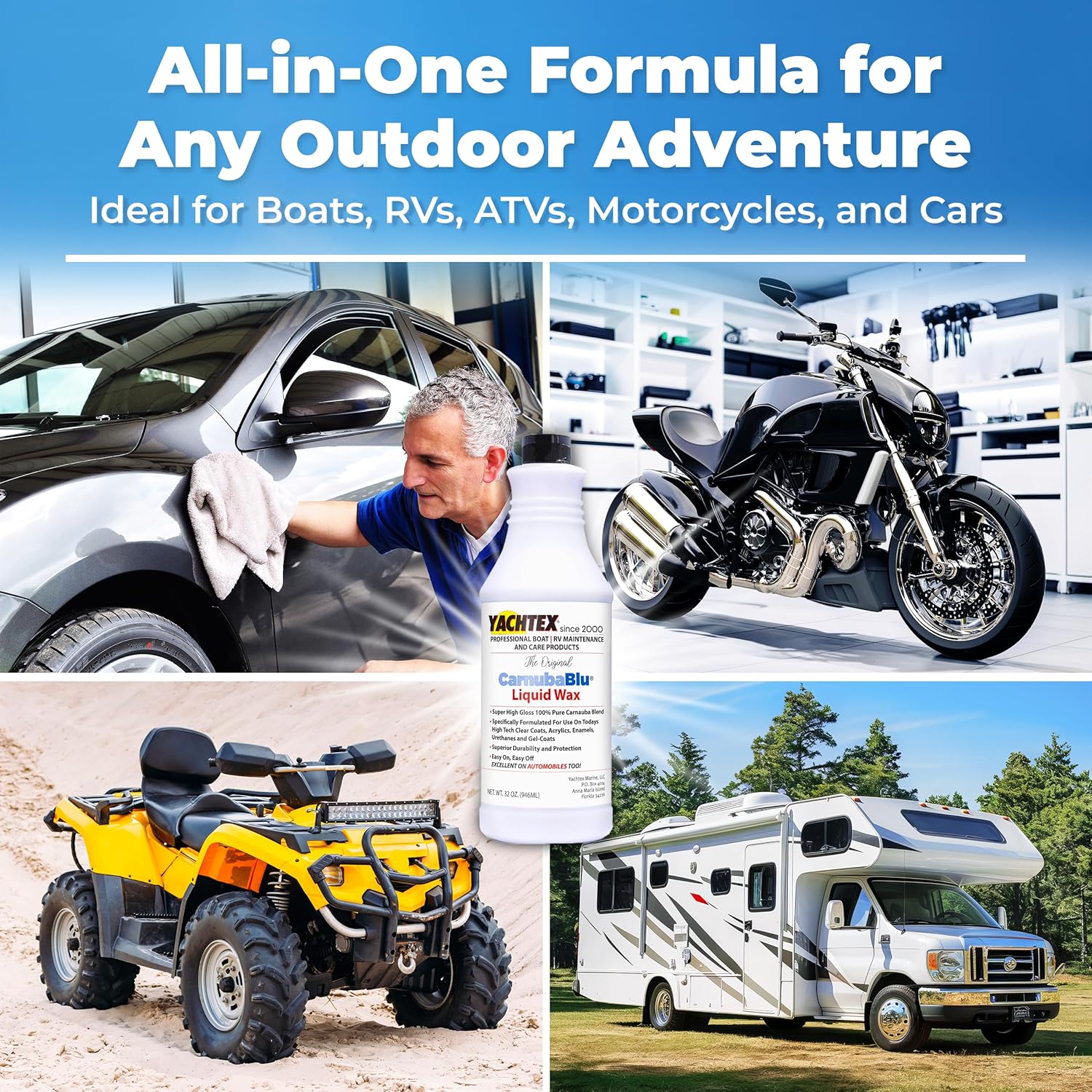 FÓRMULA MULTIUSO: Com 100% de carnaúba pura em uma fórmula líquida de fácil aplicação, o Carnuba Blu Wax é perfeito para os veículos mais exigentes. Adicione um brilho incrível a barcos, RVs, ATVs, quadriciclos, jet skis, embarcações marinhas, motos, carrinhos de golfe, trailers Airstream e carros!