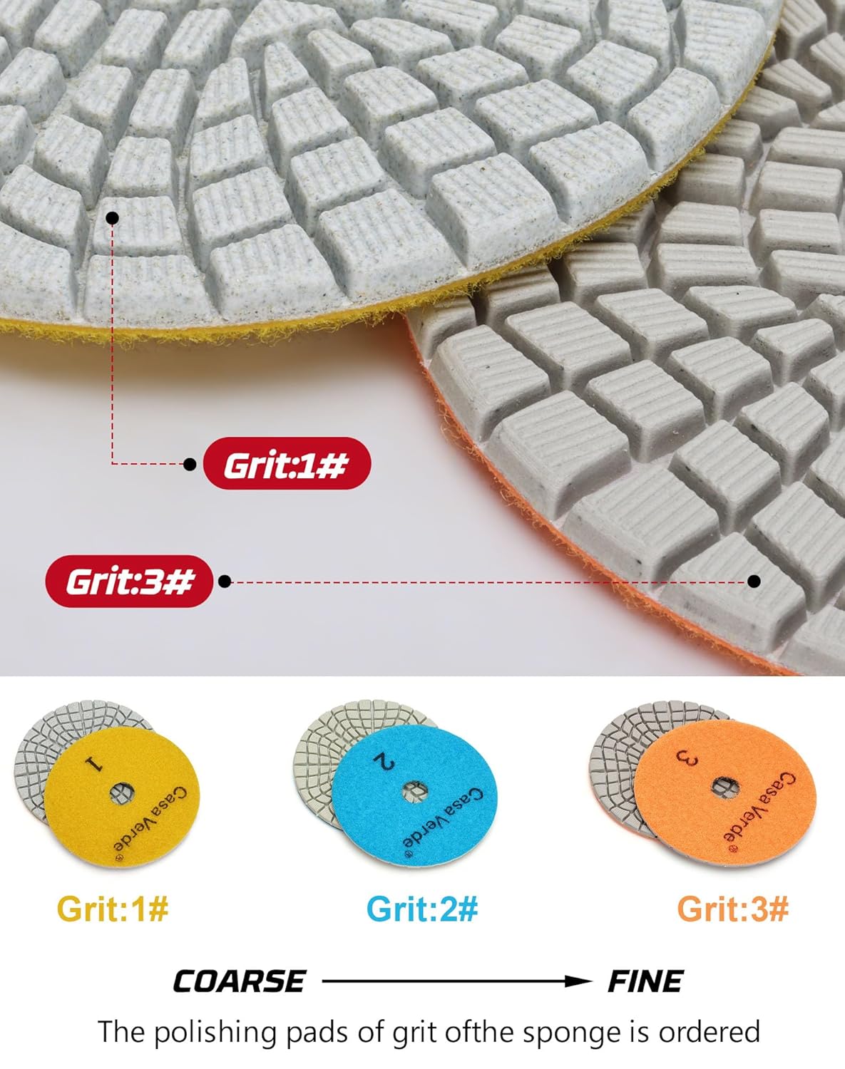 As almofadas de polimento Casaverde 3-Step Diamond Polishing Pads de 4″ são a escolha ideal para profissionais e entusiastas que buscam um acabamento impecável em superfícies de granito, mármore e pedras engenheiradas. Com uma espessura de 3mm, essas almofadas oferecem uma combinação perfeita de durabilidade e flexibilidade, permitindo um polimento eficiente e de alta qualidade. A sua construção ultra flexível garante que as almofadas se adaptem facilmente a contornos e bordas, tornando-as perfeitas para polimentos em áreas pequenas ou de difícil acesso.