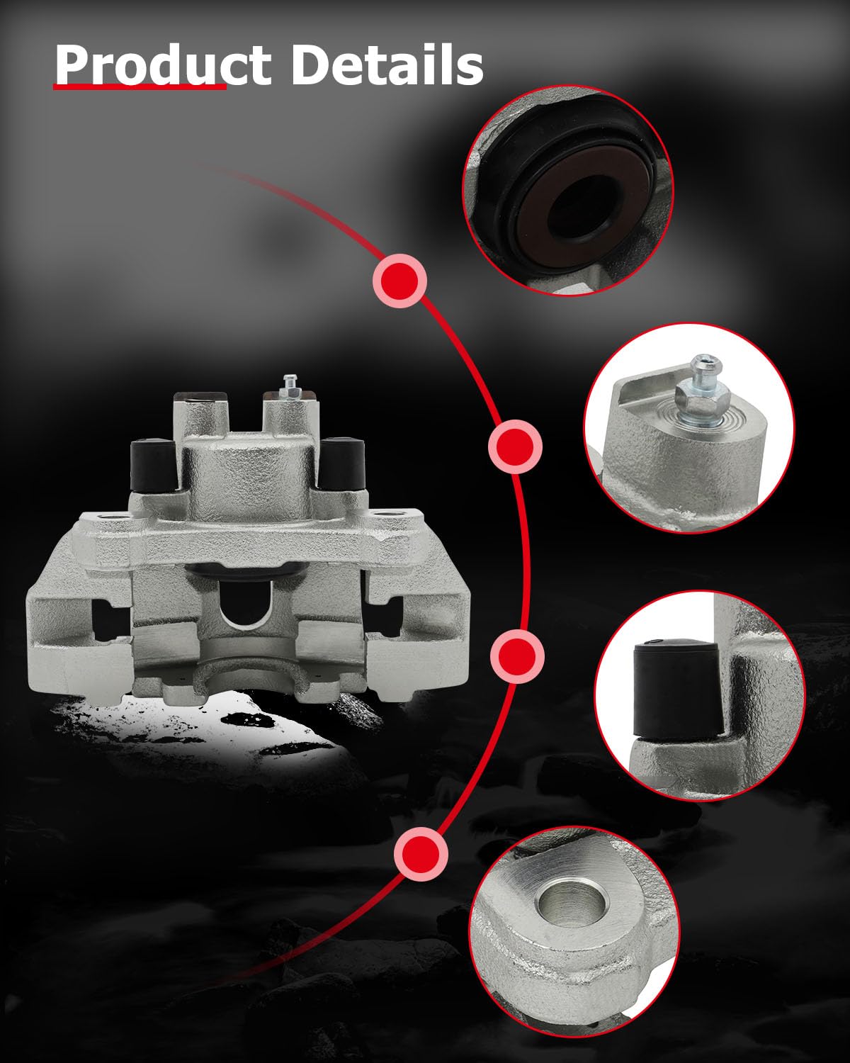 – Construção Durável: O pistão de material fenólico oferece resistência ao calor e à corrosão, aumentando a vida útil do caliper.